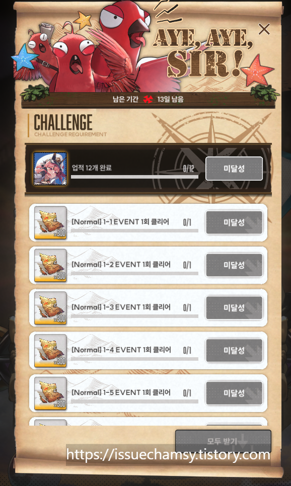 이벤트 미션은 이벤트 스테이지를 클리어시 추가로 지도조각 이벤트 재화를 얻을수있고 12회 미션 달성시