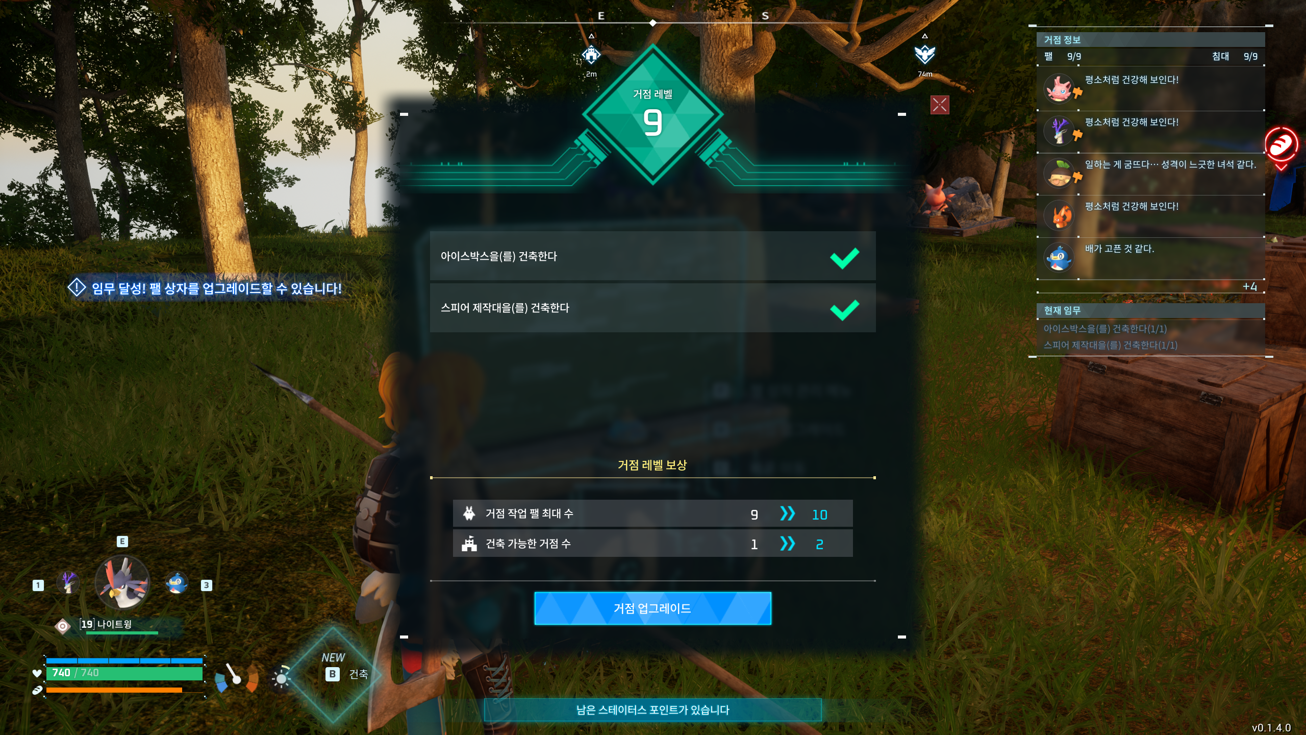 거점레벨 9 퀘스트를 완료했다. 업그레이드 해보자...!
