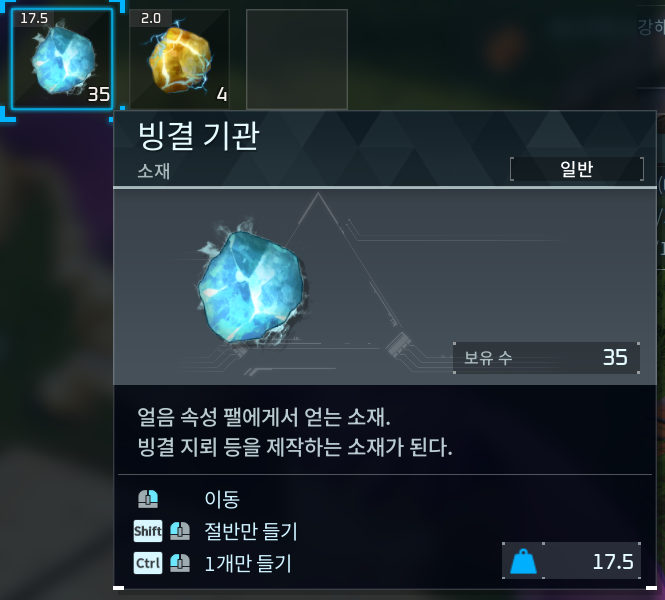 *빙결기관은 얼음속성 팰이 드랍한다. 초반에 주변에 돌아다니는 펭키를 잡으면 쉽게 구할 수 있다.