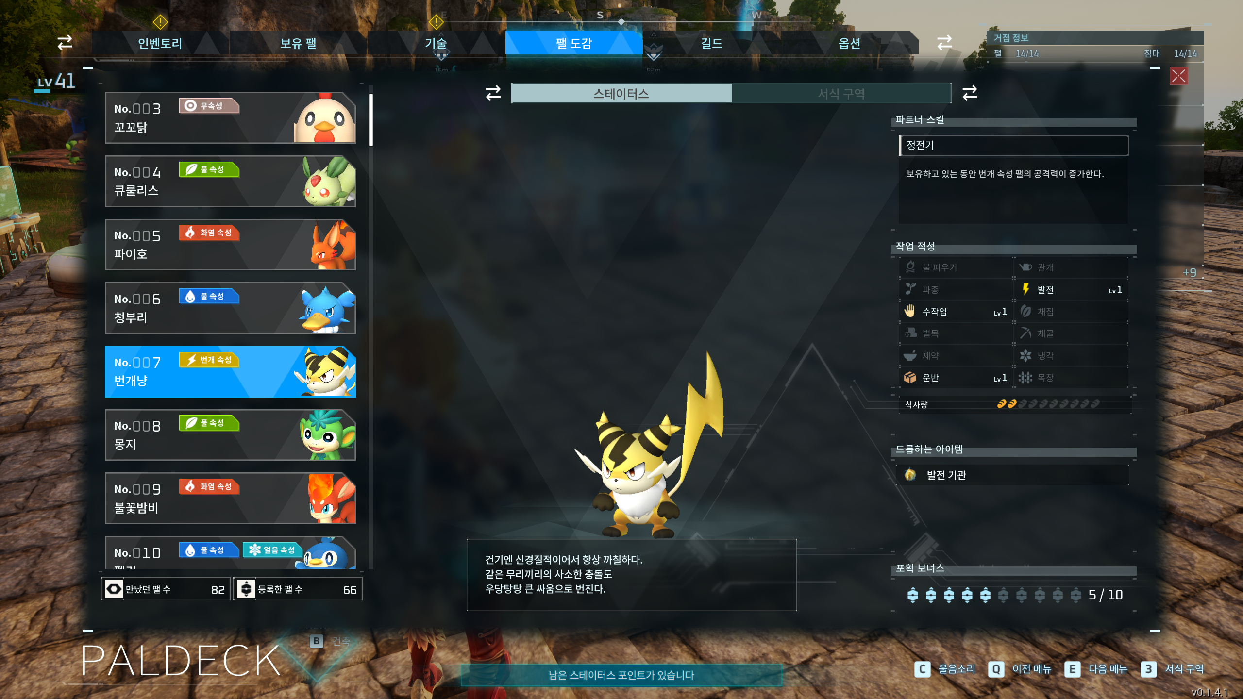 *발전기관을 수급하는 방법은 번개속성의 팰을 포획하거나 사냥하면 됩니다!...