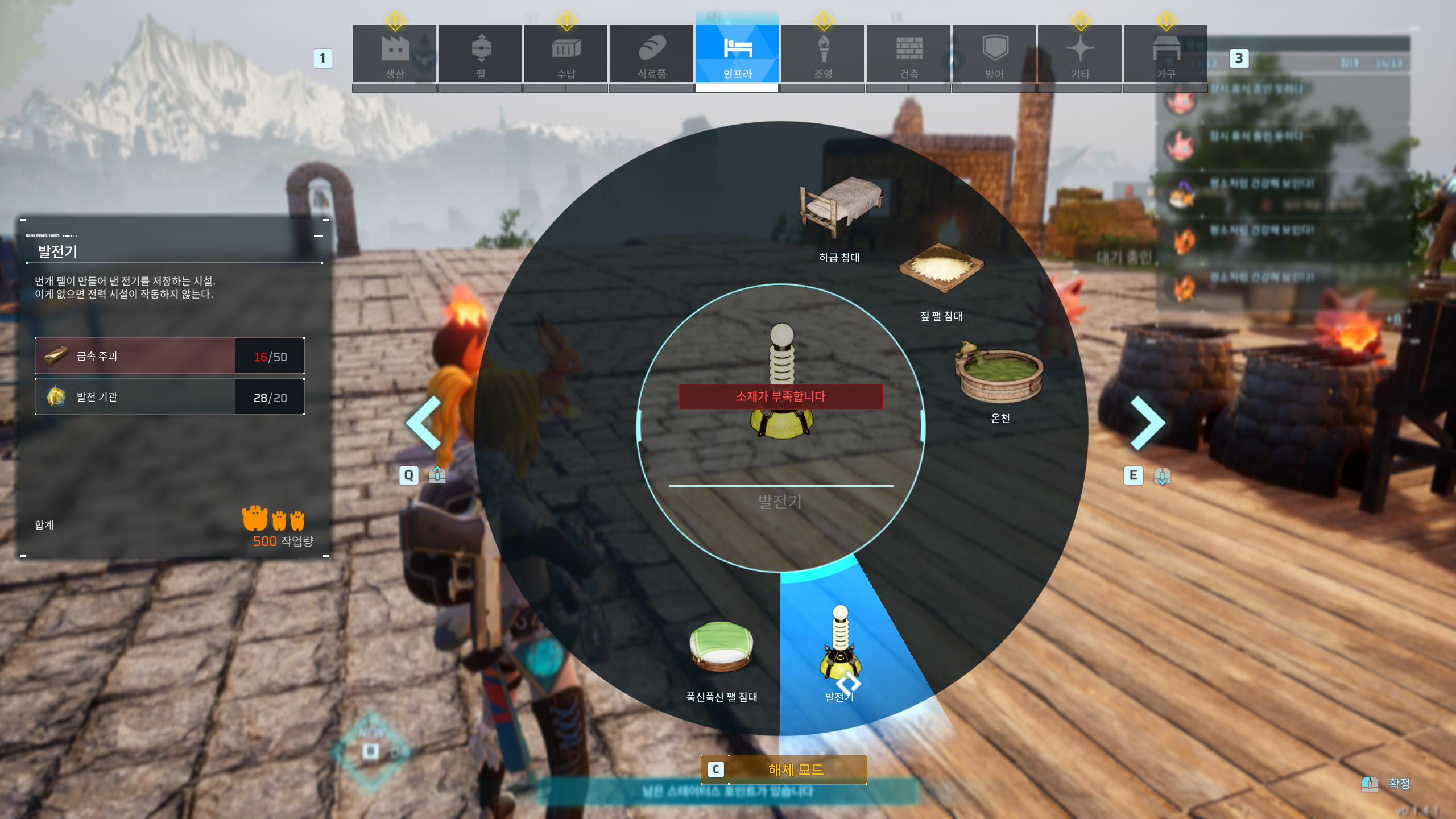 *스피어라인 공장을 건설했습니다... 그런데 상단에 전력부족이라고 뜨네요!