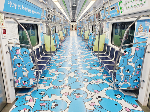 롯데월드 측은 팝업스토어 홍보를 위해 수도권 지하철 2호선 일부 차량 두 량에 걸쳐 보노보노 랩핑을 진행해 특별한 사전 마케팅 이벤트를 진행했다고 11일 밝혔다.
