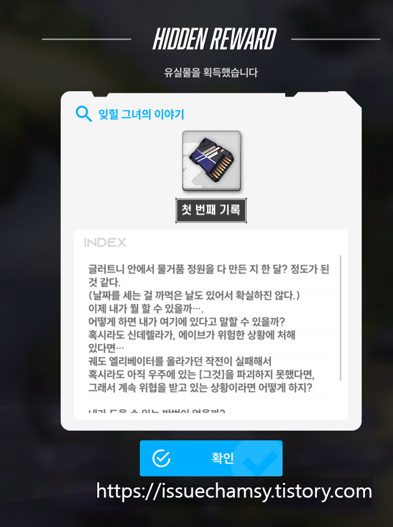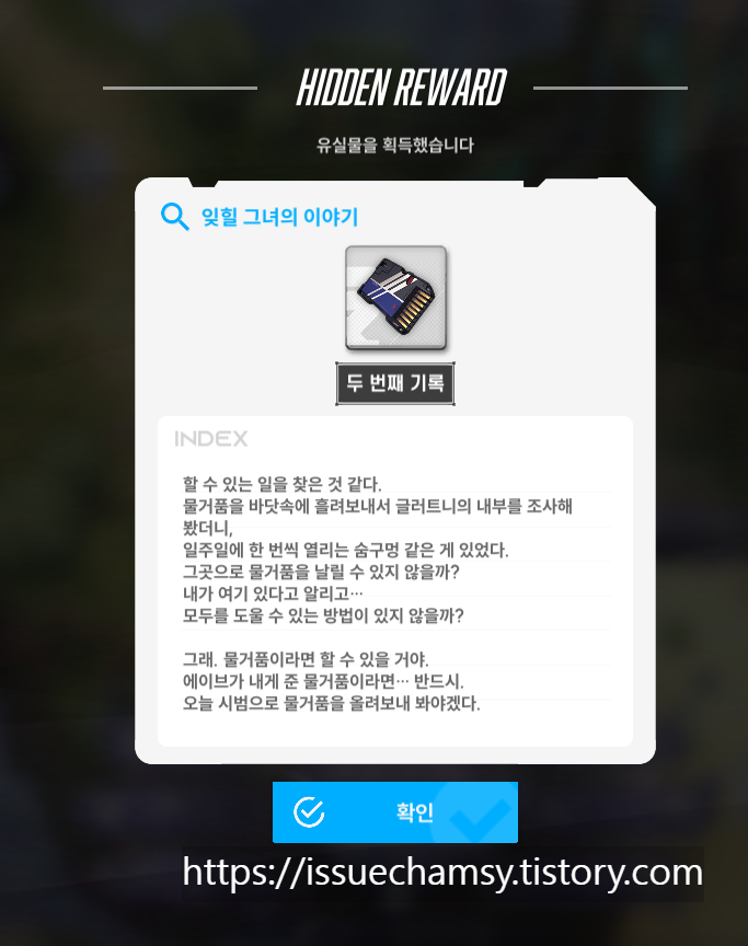 유실물 36번 (5월 8일 추가) : 잊힐 그녀의 이야기 첫번째 기록 (※ 스토리 2-12 하드 진행시 획득 가능)