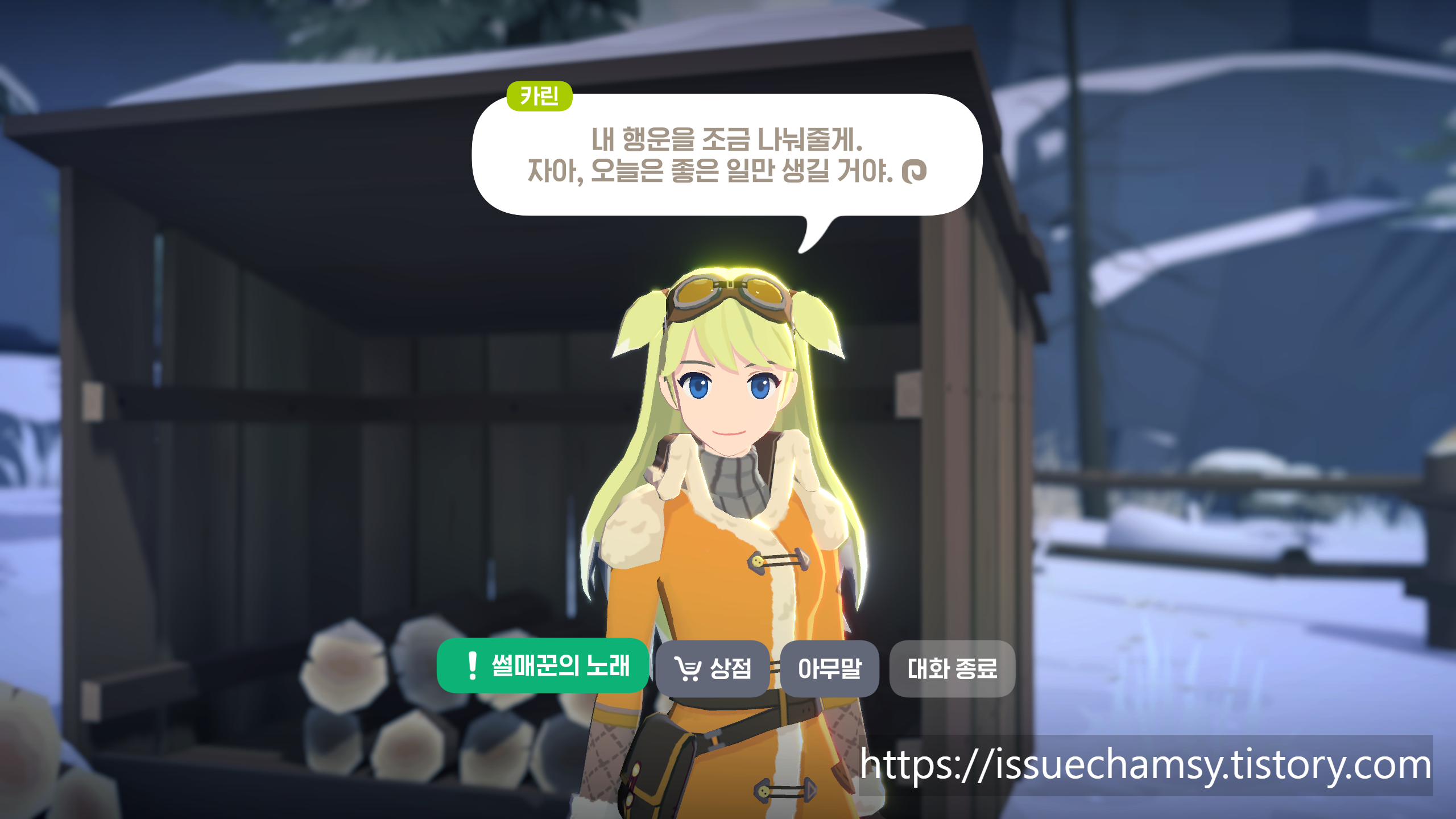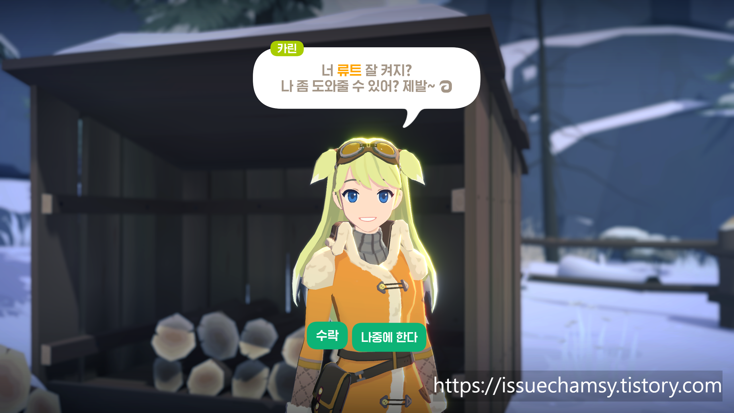 일단 카린은 허스키 익스프레스 캐릭터입니다. 마비노기 모바일에도 등장하는 인물로 얼음협곡에 있습니다.