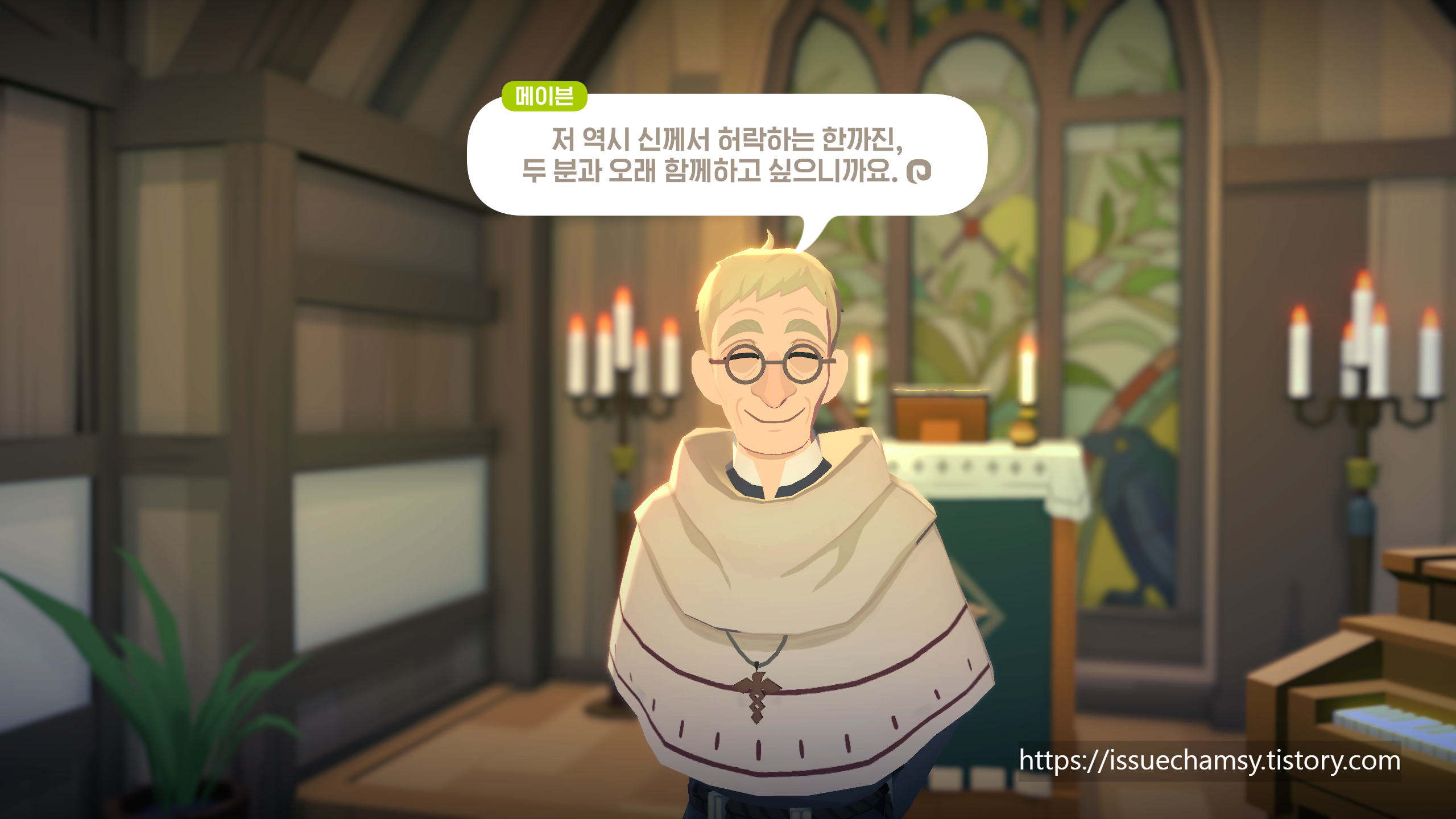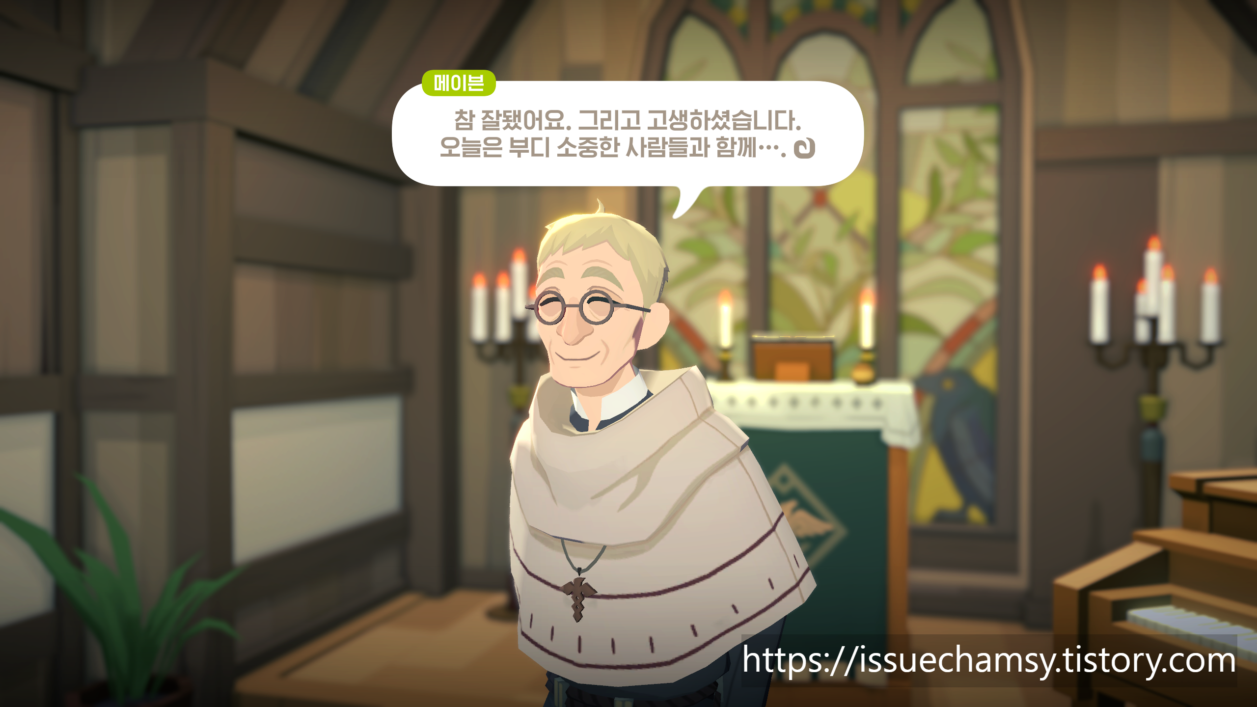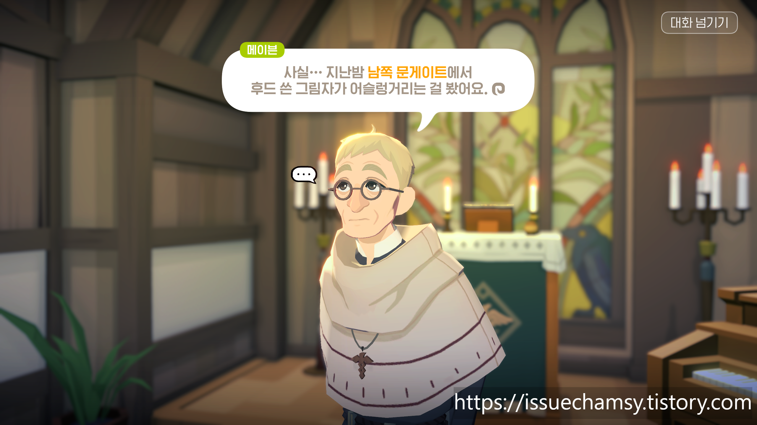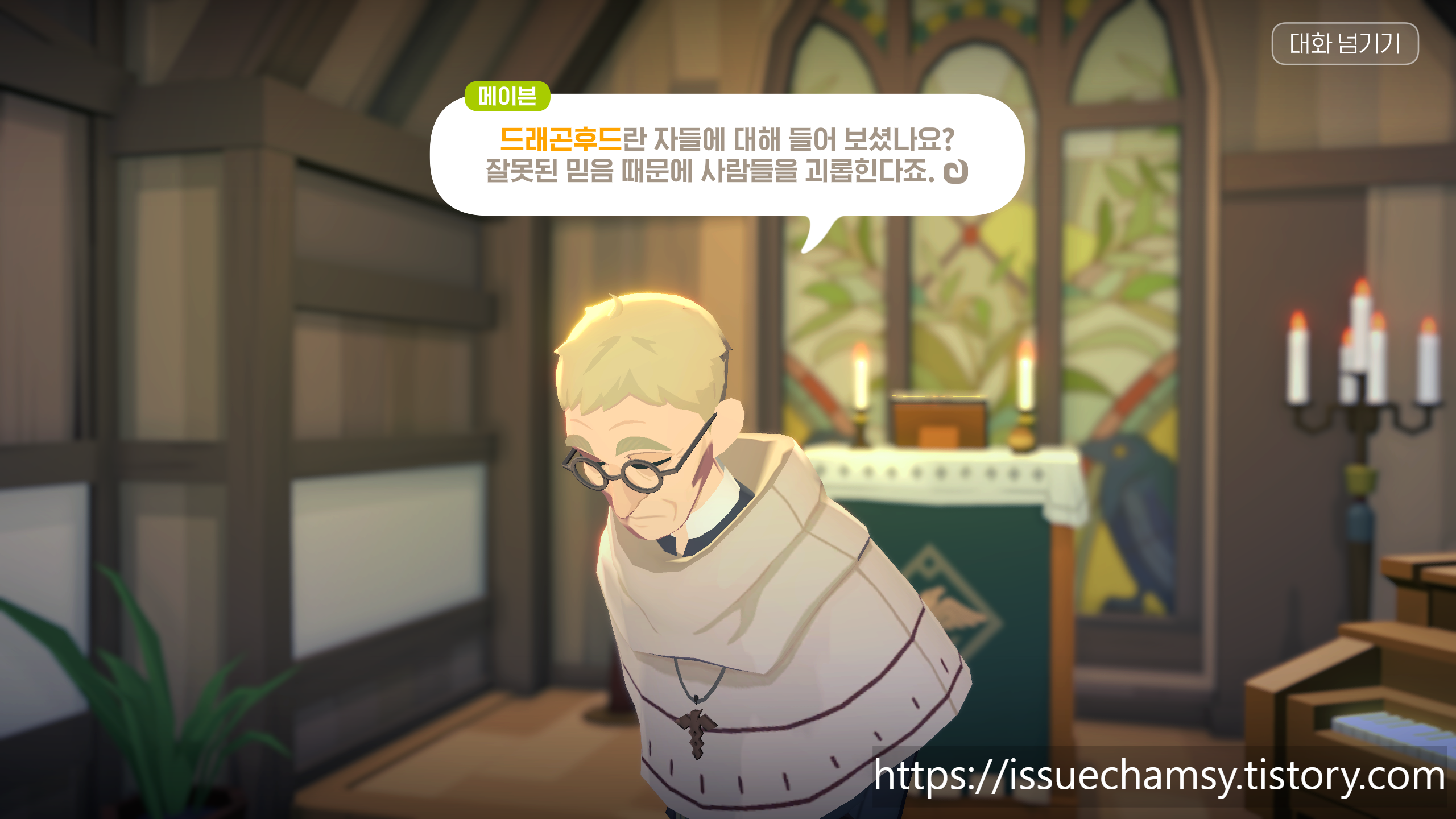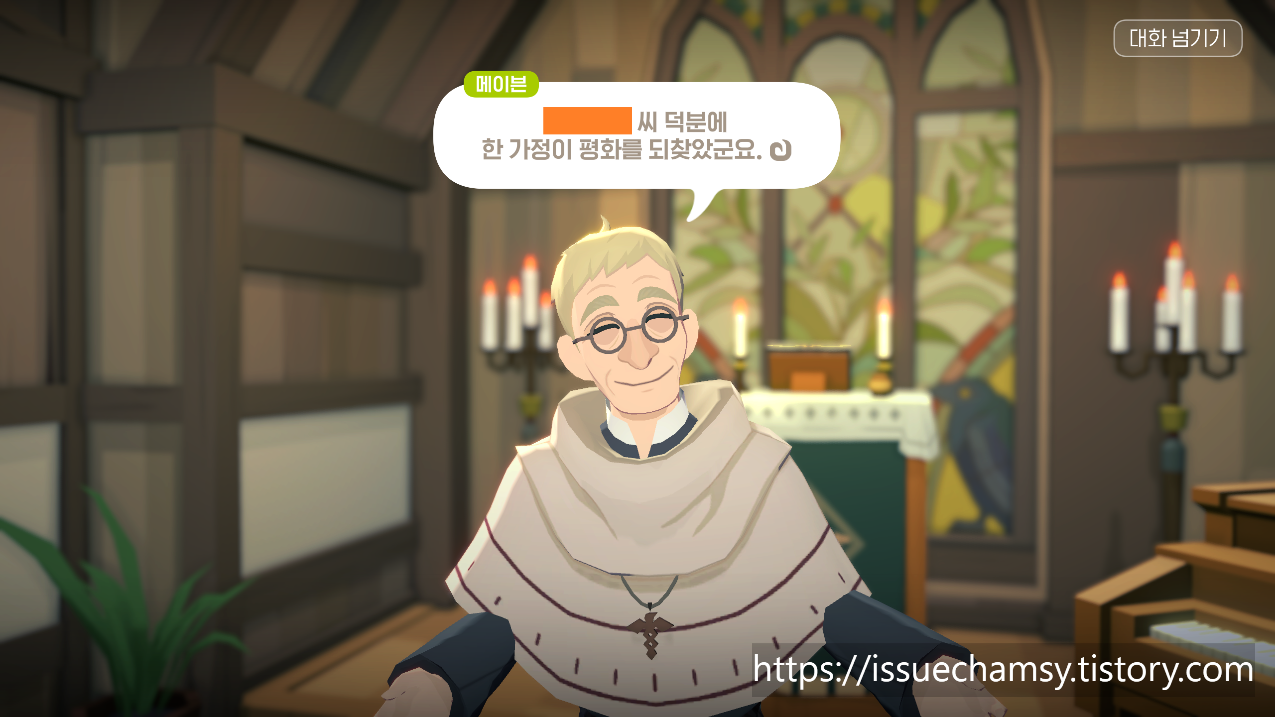 엔델리온이 메이븐 사제의 건강을 걱정하고 있습니다. 선행퀘스트 중에서 늑대의 습격으로부터 구해주는 일이 있었습니다.