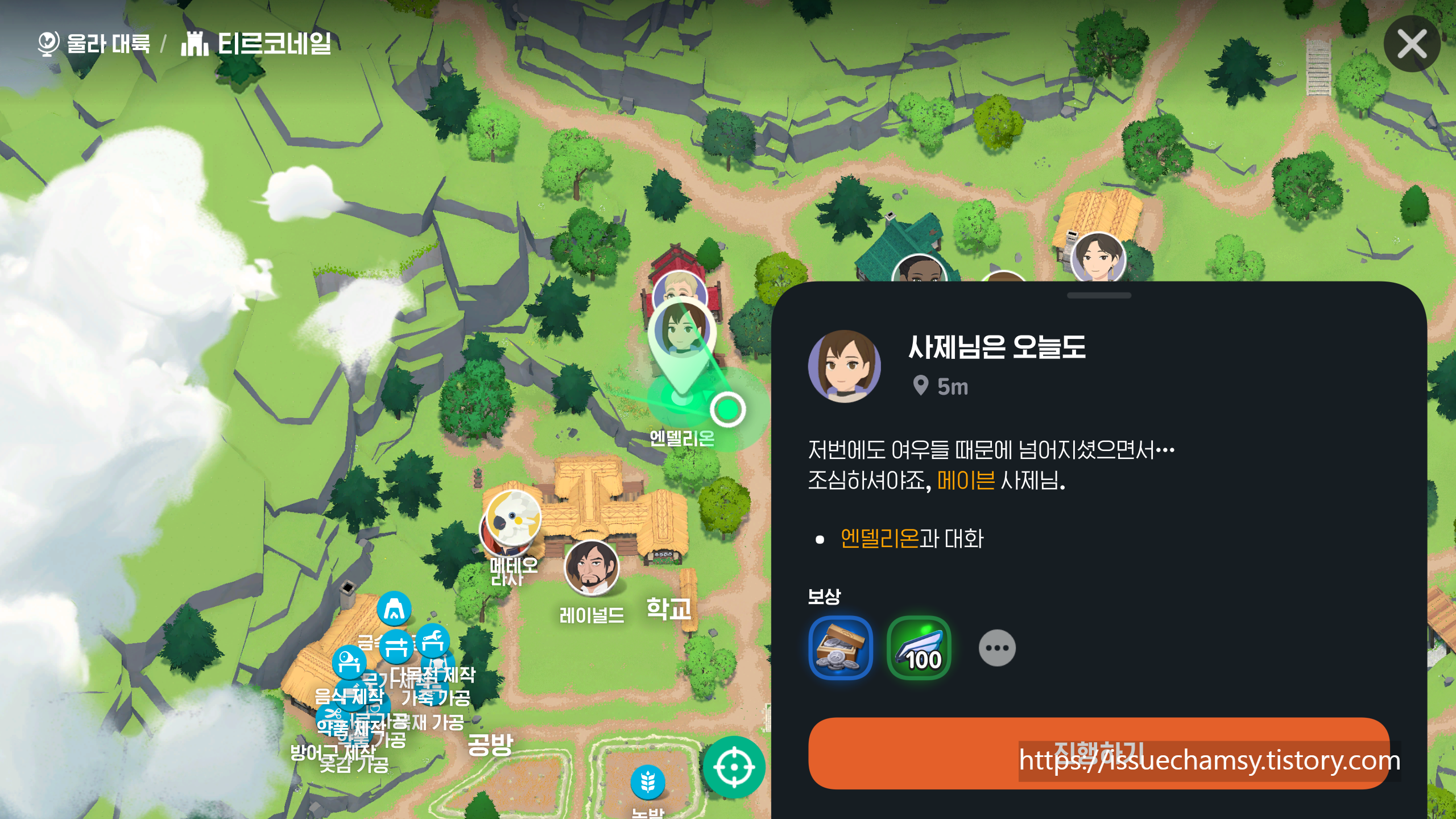 티르코네일 교회 앞에 엔델리온에게 퀘스트를 받을수 있습니다.