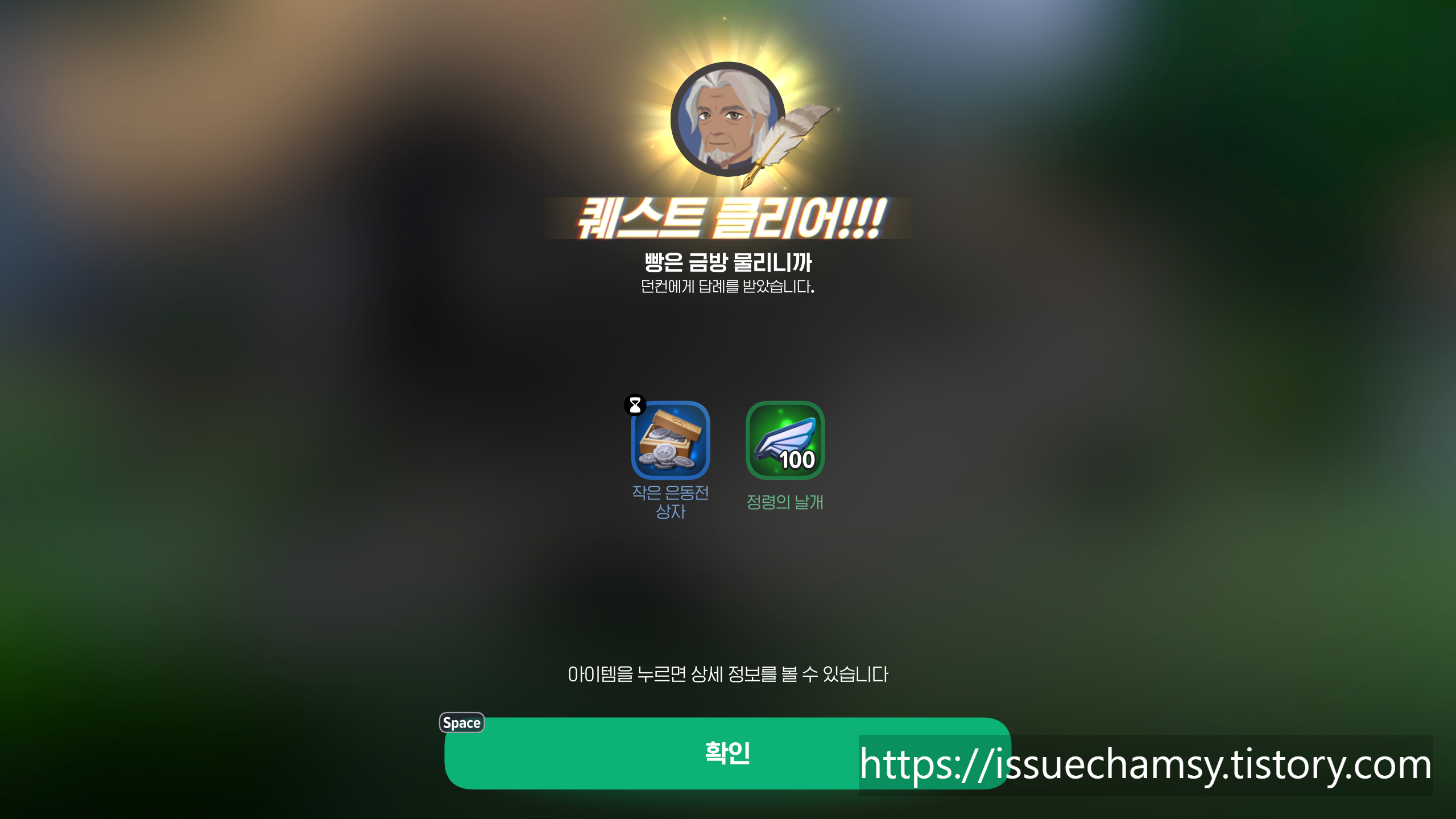| 3 일차 | 빵은 금방 물리니깐 | 작은 은동전 상자(5일) 1개 정령의 날개 100개 |