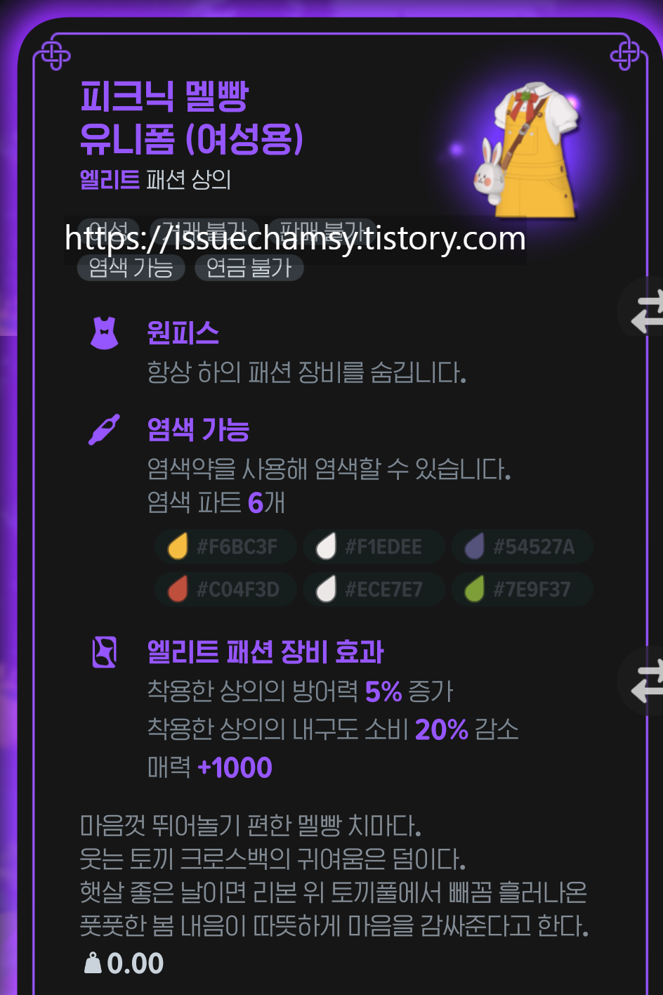 2. 피크닉 멜빵 유니폼 (여성용) 스펙 및 외형