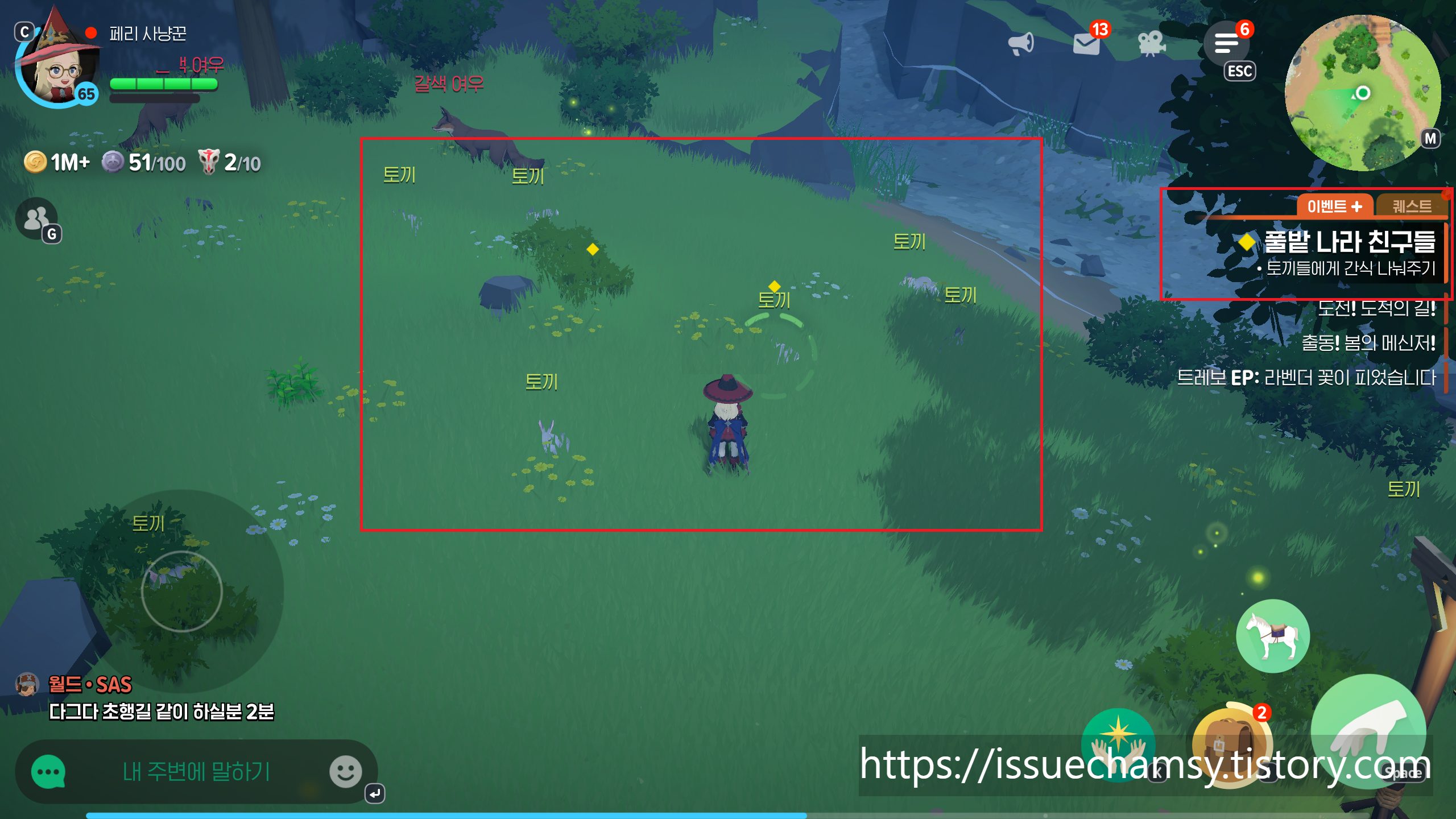 ※선행 조건으로 2일차 퀘스트 '풀밭 나라 친구들' 를 진행하고 다음날 오전06시부터 진행가능합니다.