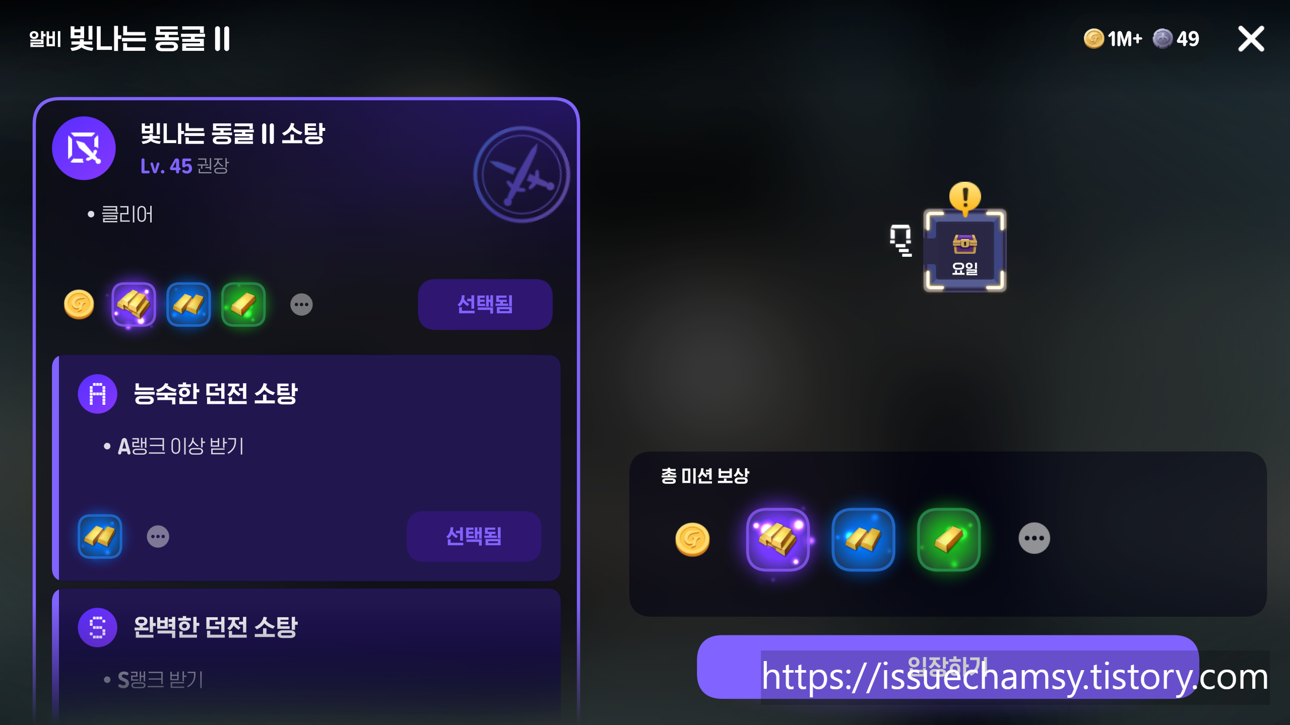 📢요일던전 보상: 골드, 연금술 재연소 촉매,보석, 50렙제 유니크장비
