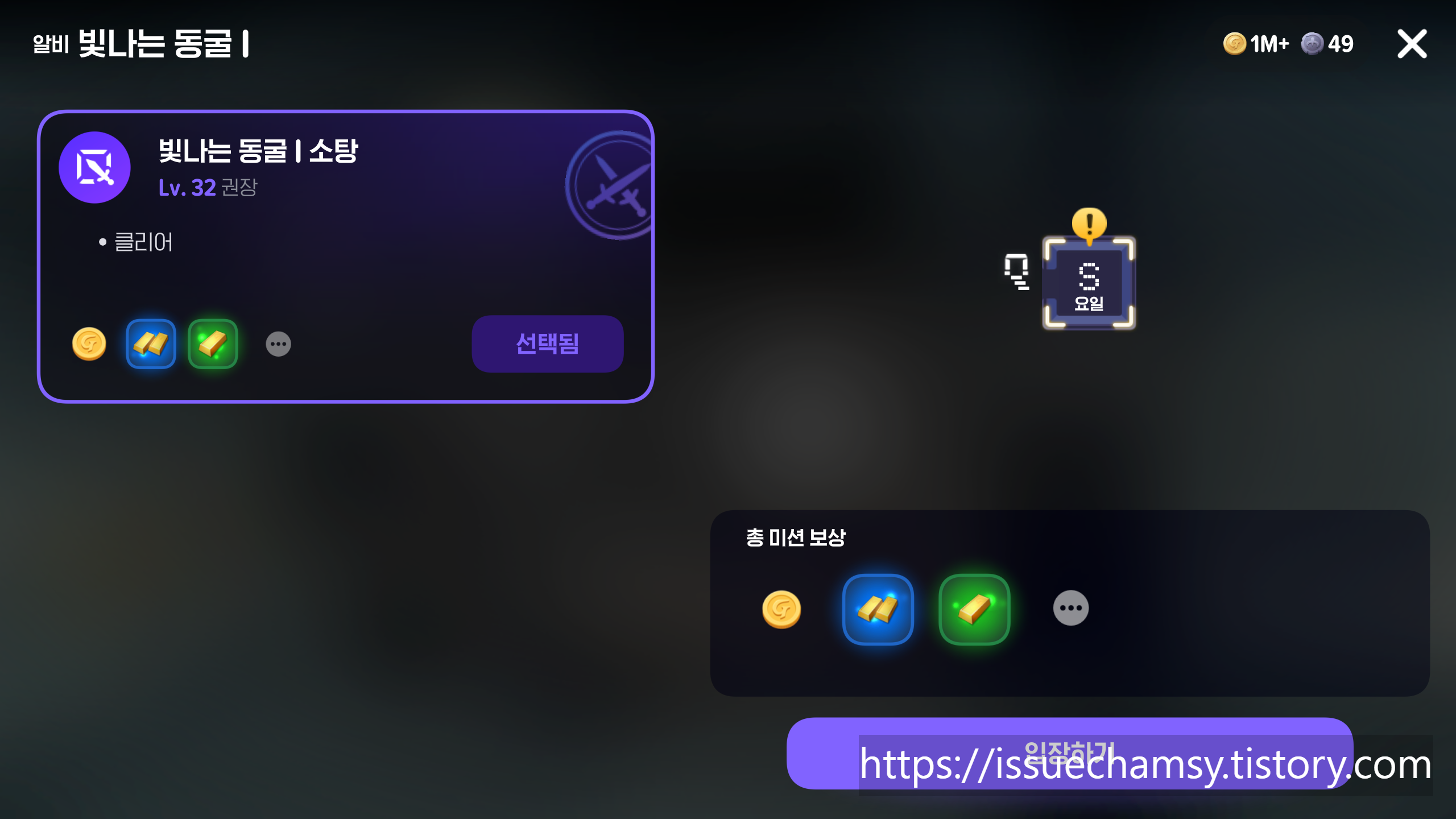 📢요일던전 입장조건 : 캐릭터레벨 32 이상 부터