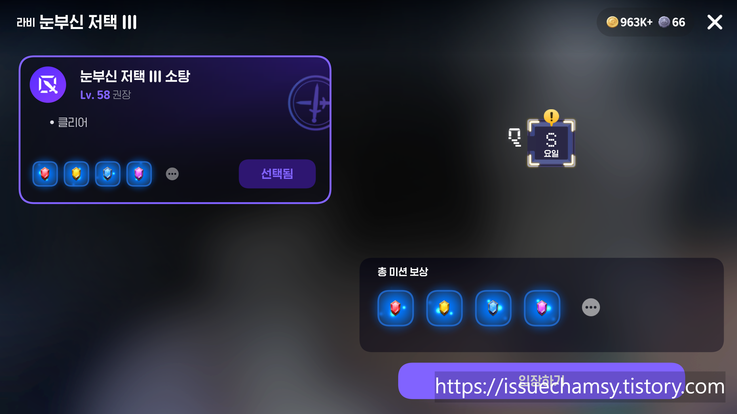 | 눈부신 저택 | 화,금 | Lv.32~58 | 보석,유니크장비 | 조각난 보석,조각난보석S,투박한보석,투박한보석S | 조각난 보석, 조각난보석S, 투박한보석,투박한보석S |