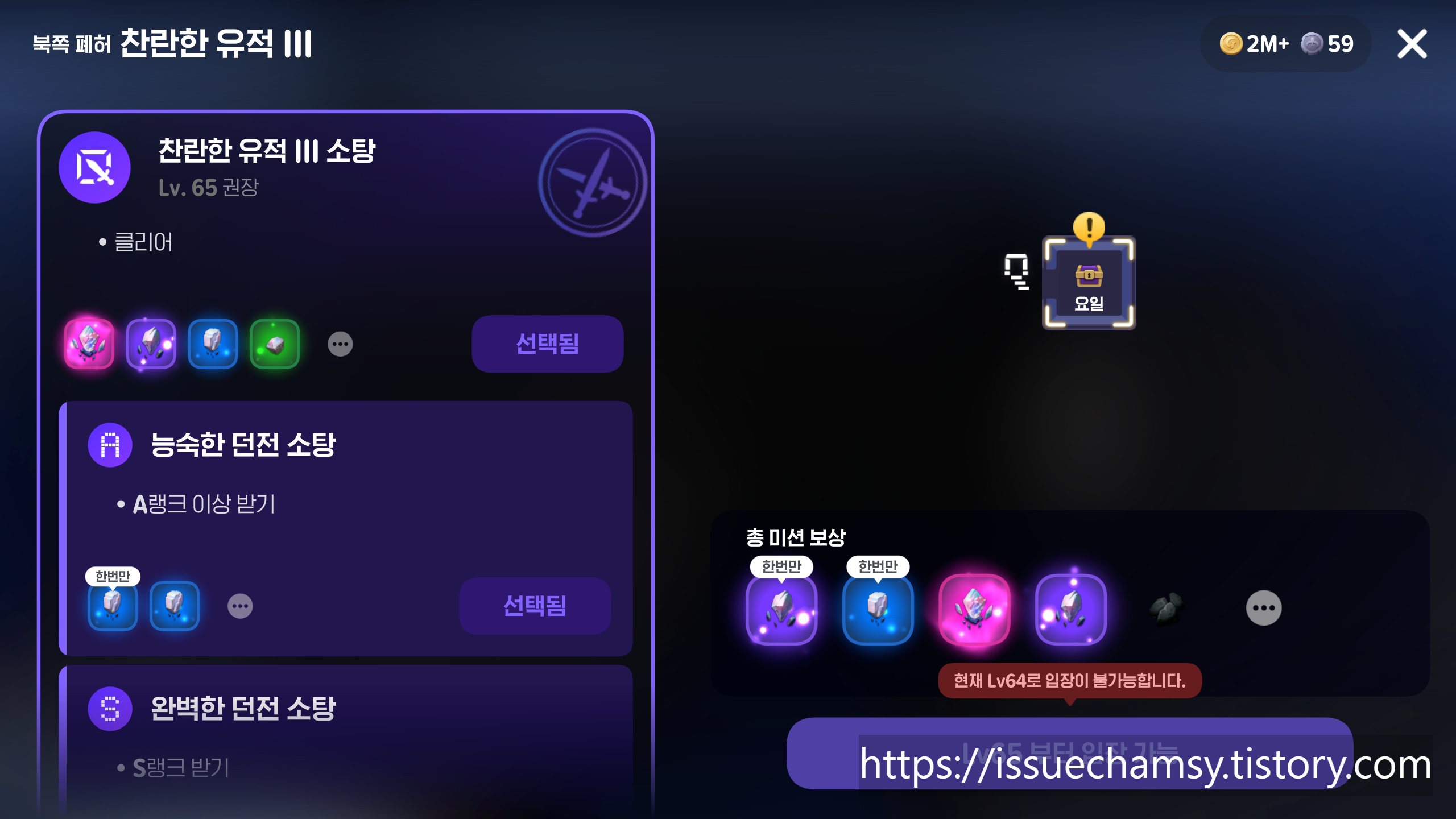 | 찬란한 유적III | Lv.65 | 고급촉매,레어촉매,엘리트촉매,에픽촉매 |