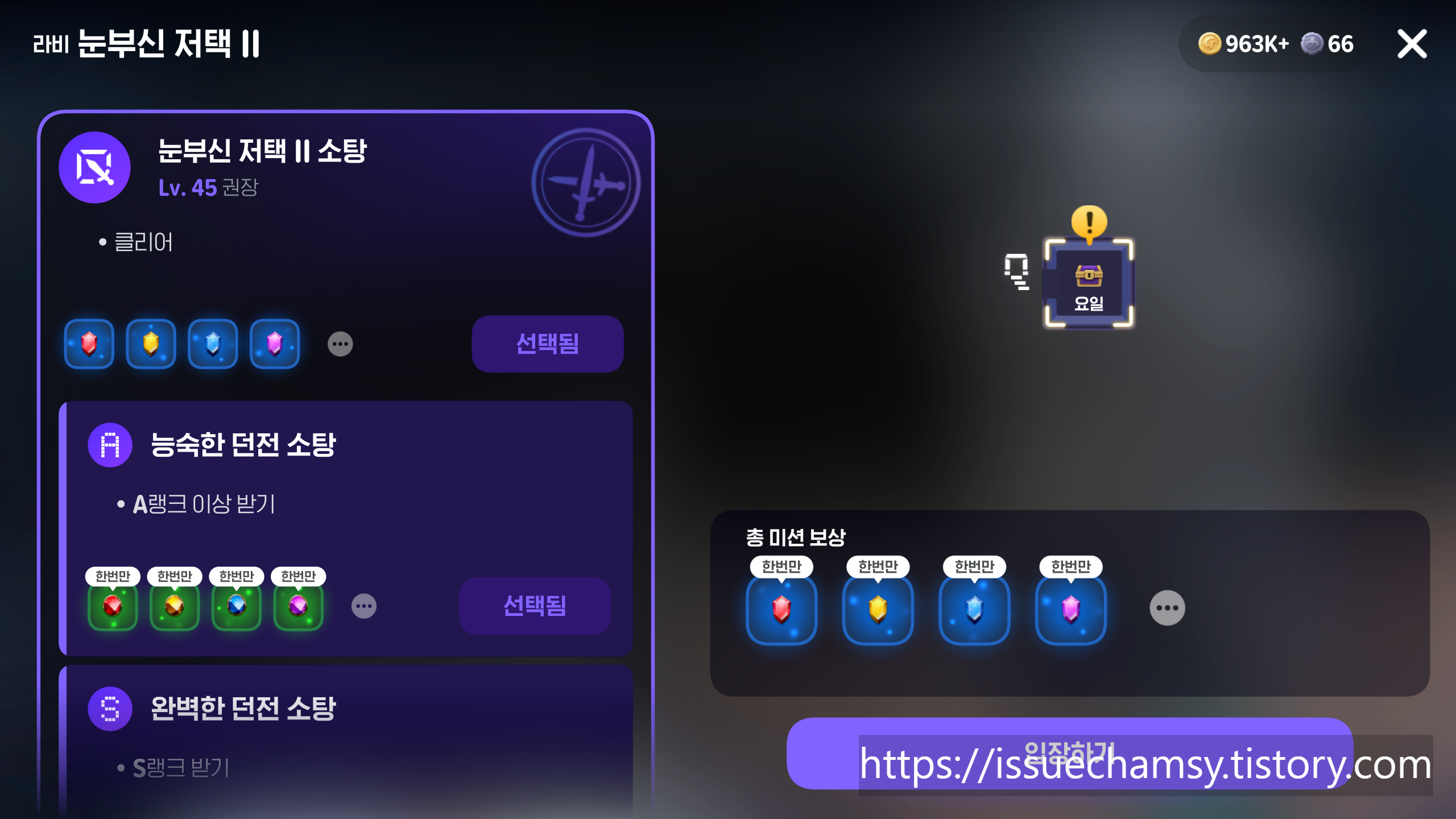 | 입장 난이도 | 입장 레벨 | 보상 |