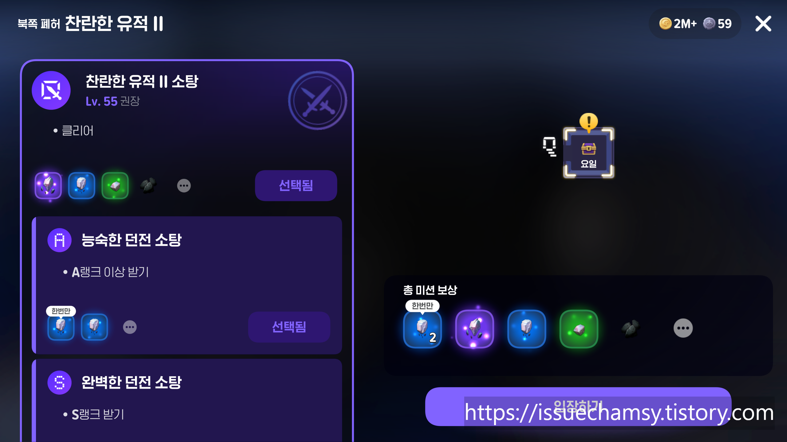 📢요일던전 횟수: 캐릭터당 1일 1회