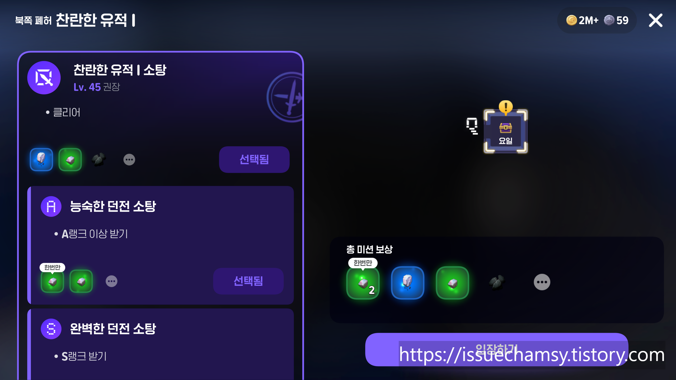 ◇📆요일던전 보상 및 공략
