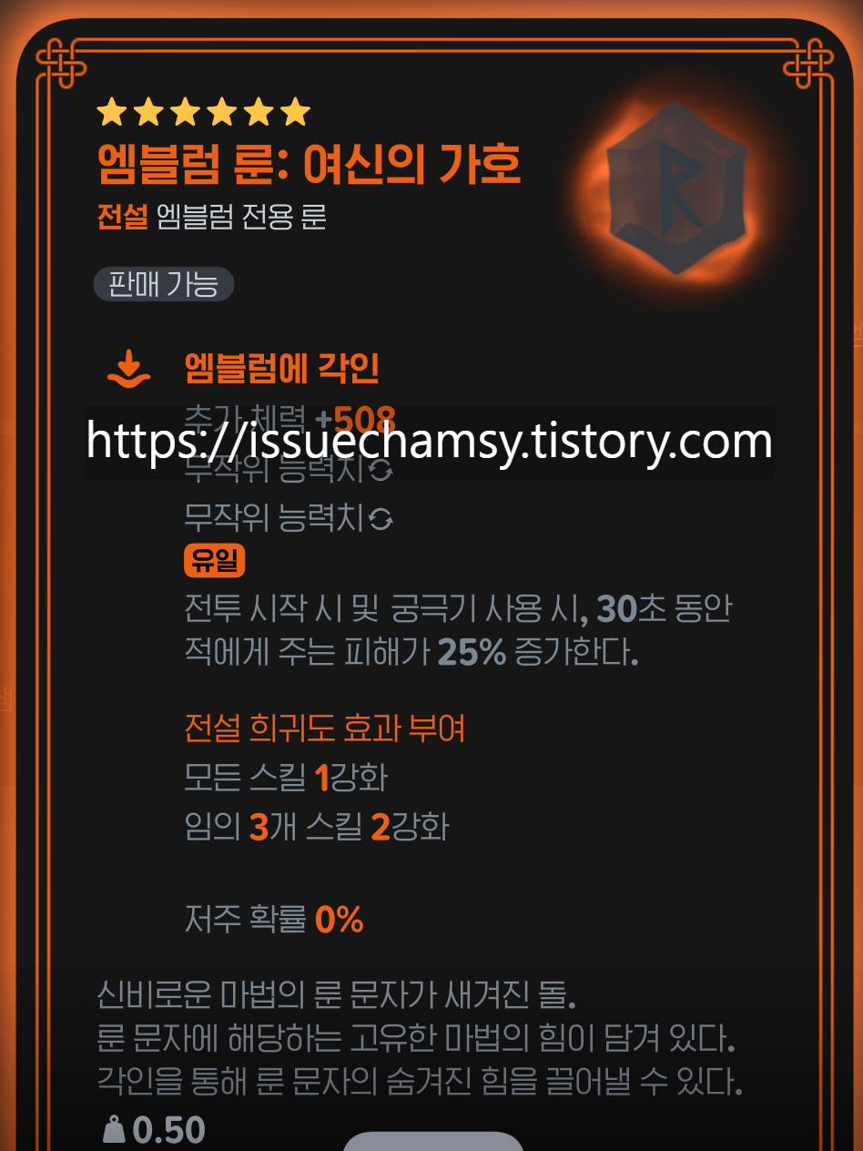 무기 룬:3종 / 방어구 룬:9종 / 앰블럼 룬:2종