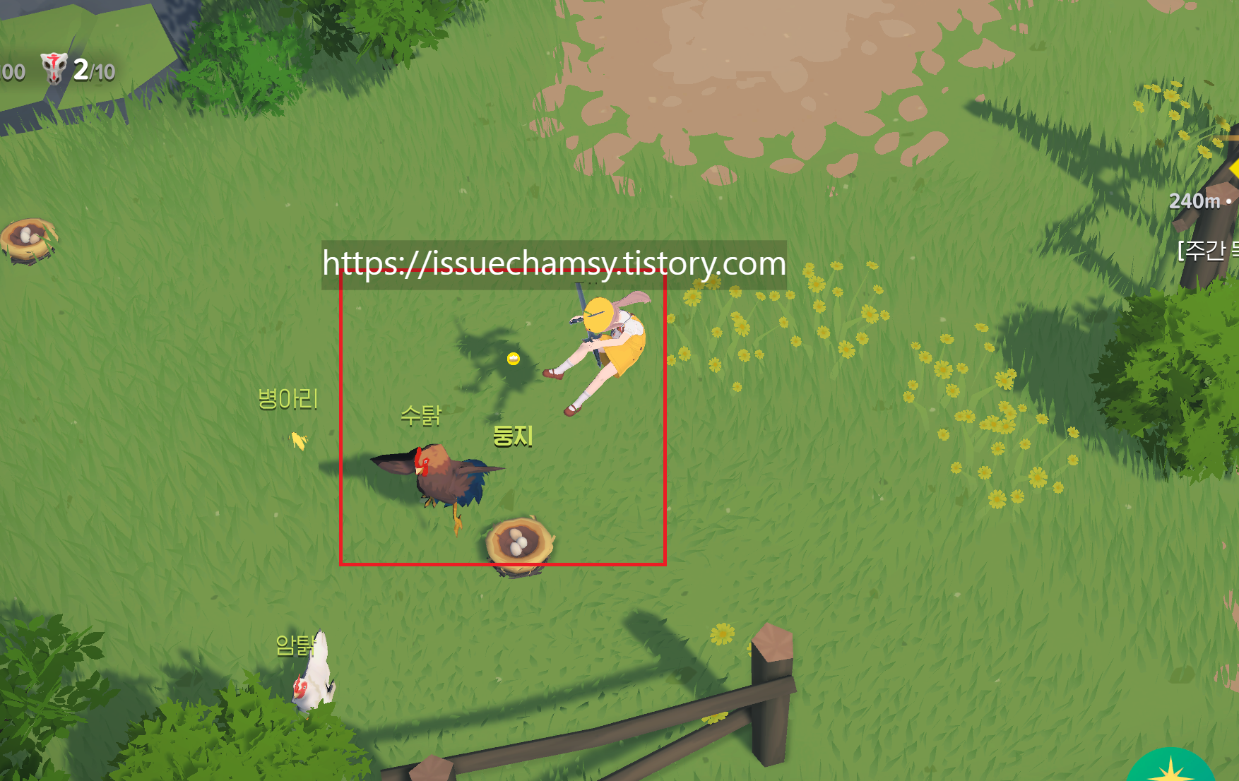 달걀을 채집하다보면 수탉이 발차기를 하는데요. 수탉이 발차기를 안해서 편하게 무한파밍을 즐길수있는 장소가 있습니다.