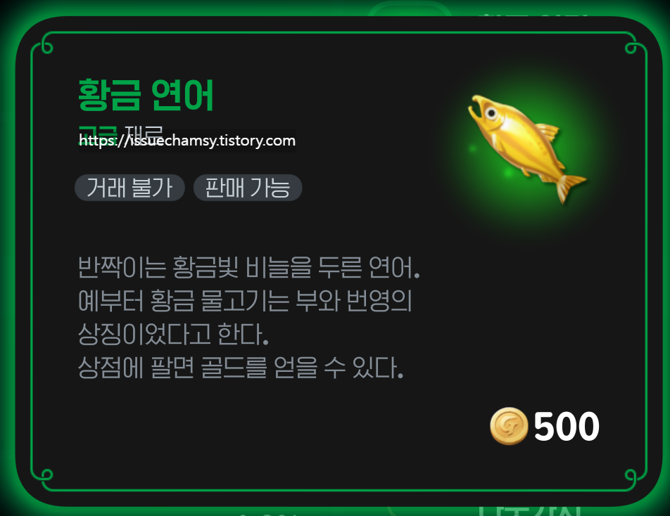 📌 황금잉어,황금연어,황금메기 는 자동낚시가 안되므로 기념품으로 간직한다.