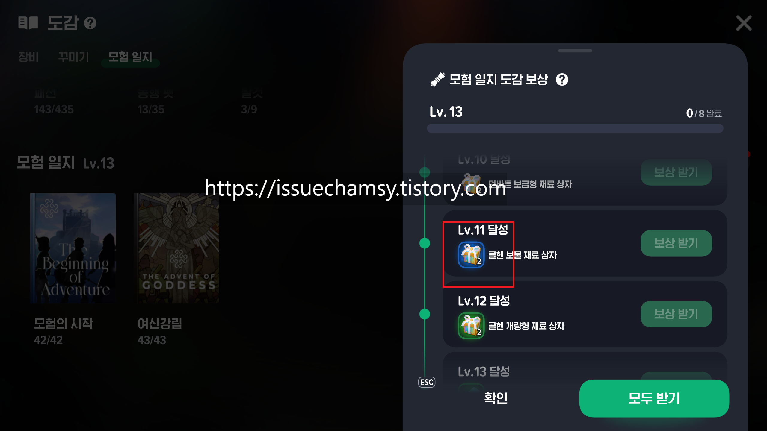 먼저 메뉴의 도감탭의 모험일지에 들어간다.