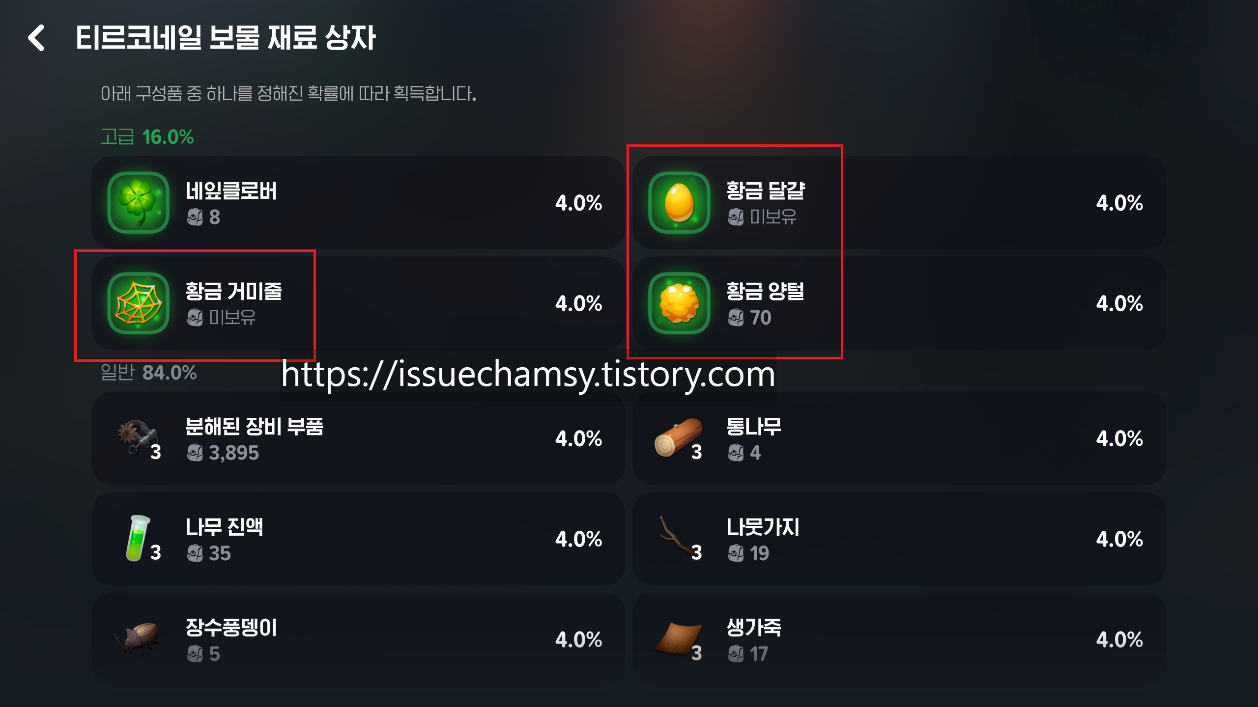 황금재료 아이템