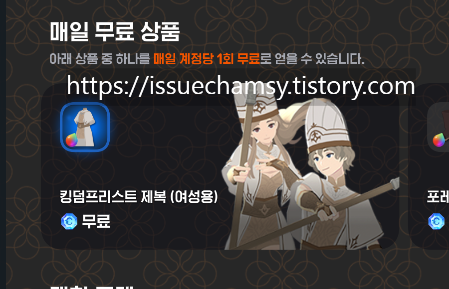 메인 스토리 진행 이후 캐시샵에서 매일 무료 패션 상품을 일일1회 획득하실수 있습니다.