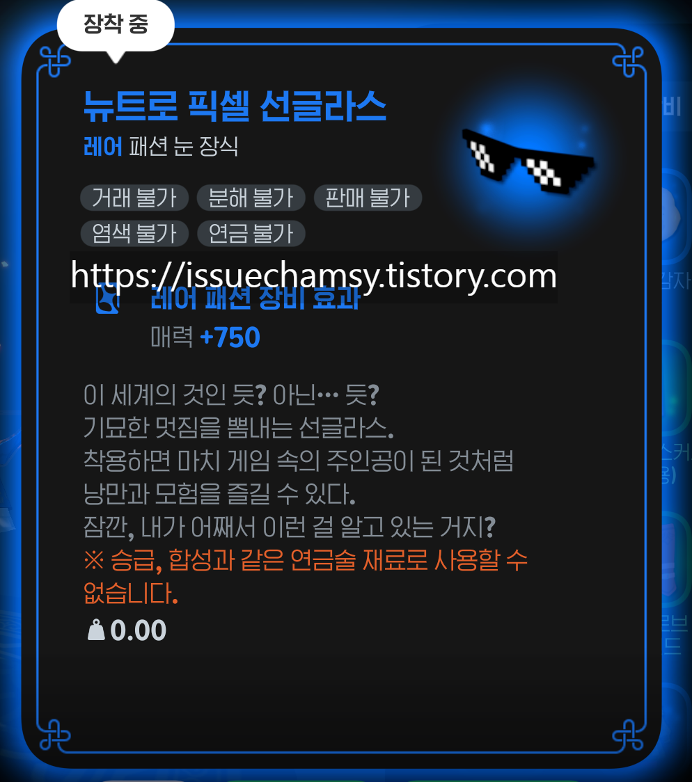 ✅엘리트등급의 패션 승급인 경우 같은 부위에 맞는 레어 등급의 패션 아이템을 재료로 이용하면 승급이 가능합니다.