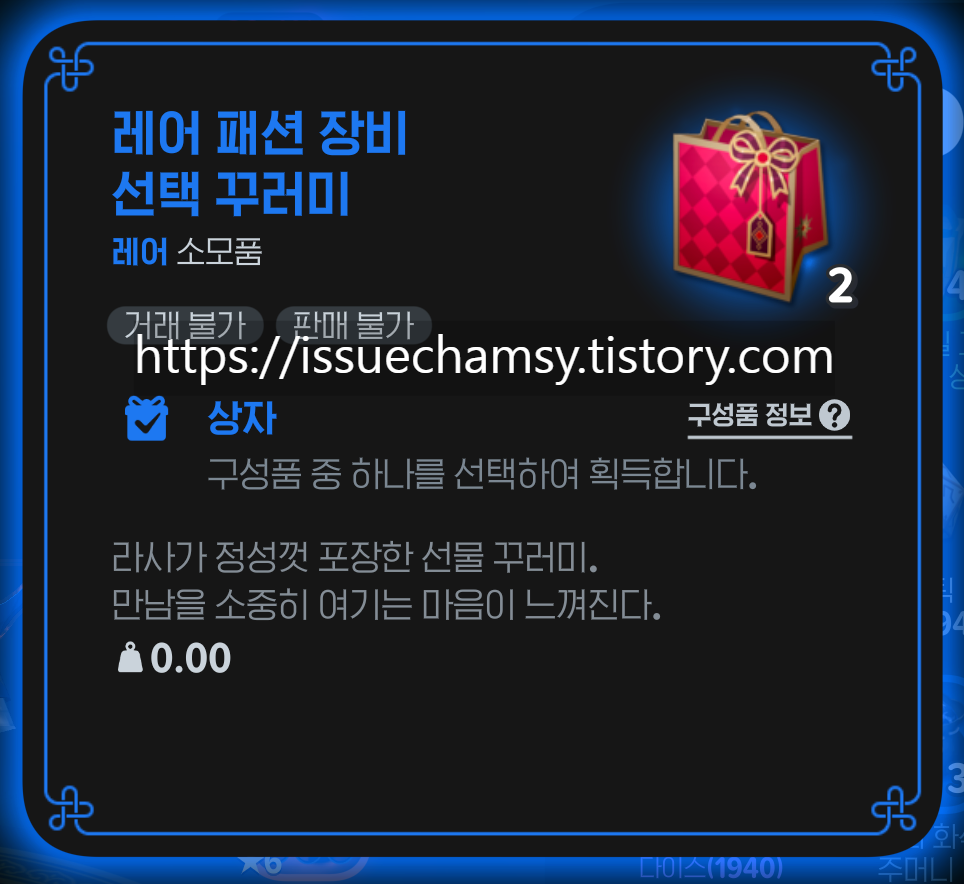 일반 패션티켓을 이용하여 일반 패션을 획득하실수 있습니다. 낮은확률로 레어등급의 패션장비도 획득가능합니다.