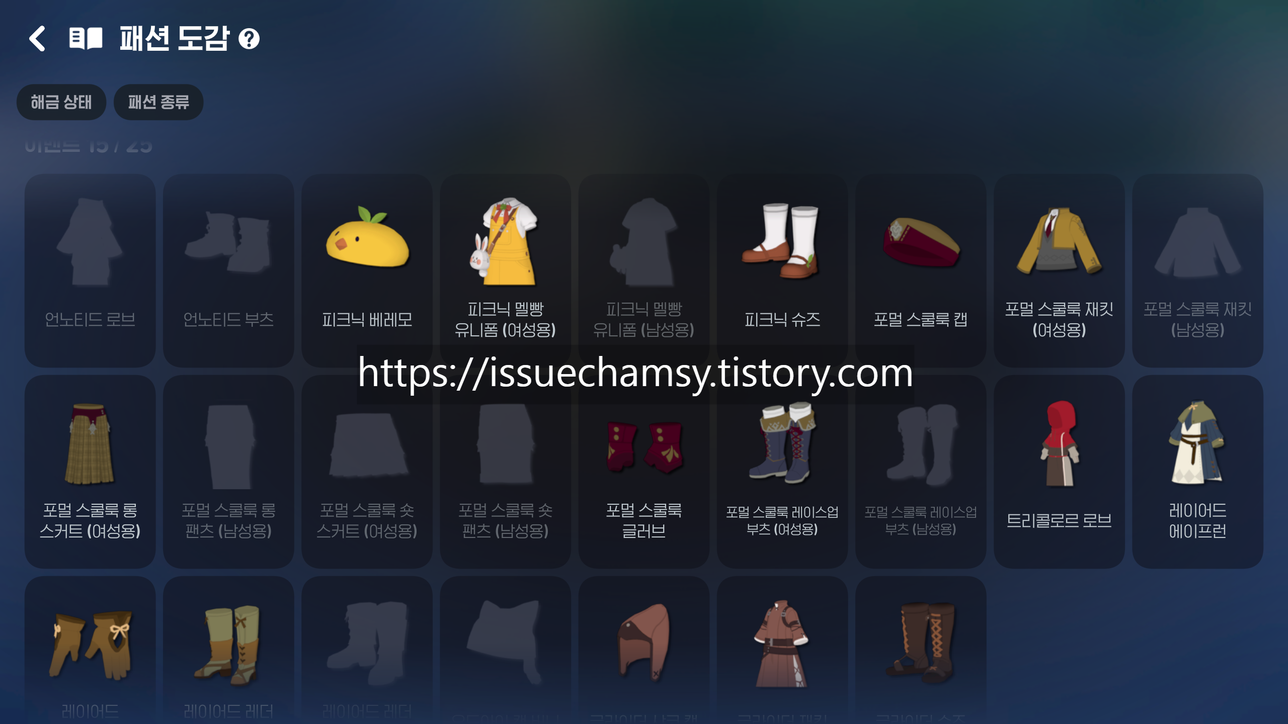 1. 매번 다른 패션의 다른부위를 구매하여 도감작을 한다.