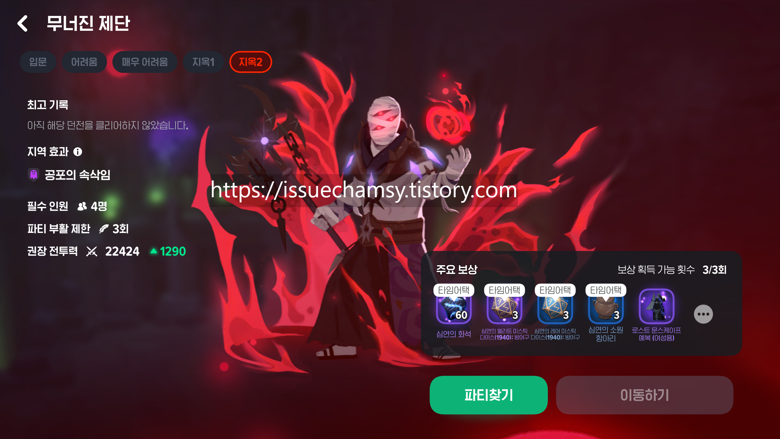 - 타임어택 8분, 부활횟수3회 기존 지옥1과 동일