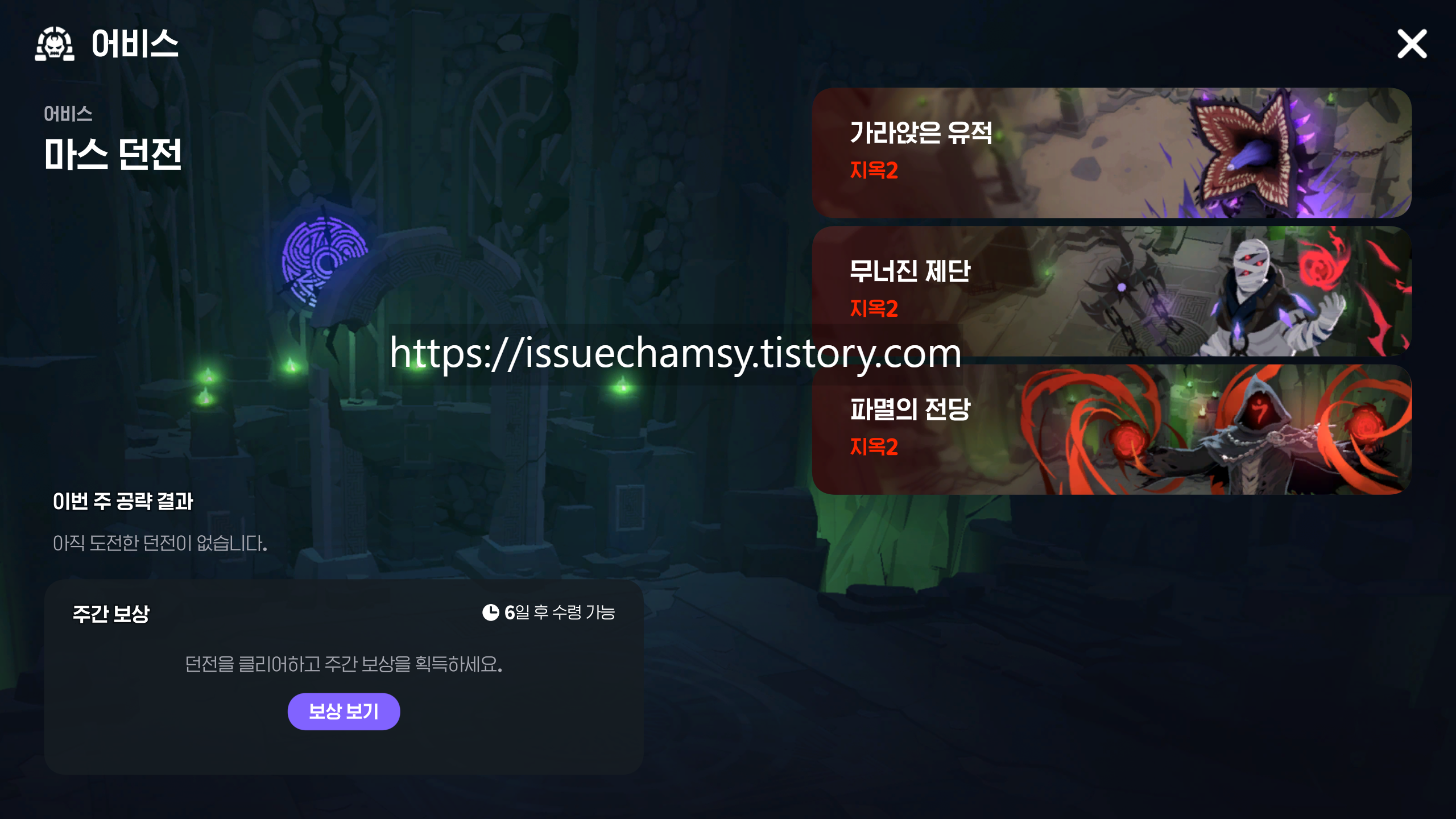 | 지옥2 던전 | 지옥2 클리어 보상 | 지옥2 타임어택 보상 | 지옥2 주간보상 |
