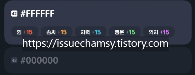 📌#000000은 현재 획득이 불가능 하며 추후 업데이트될 예정이라고 합니다.