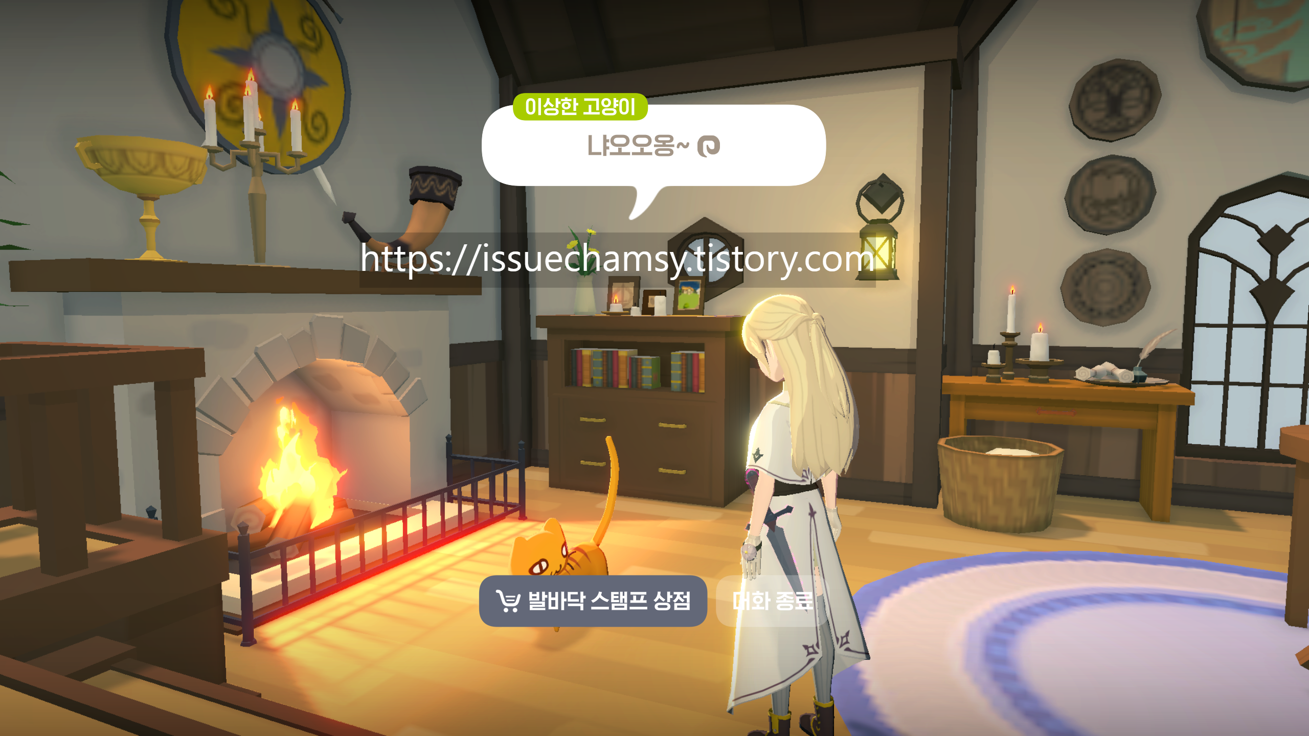 발바닥 스탬프 교환 위치는 티르코네일 던컨 촌장집의 이상한 고양이한테 교환가능합니다.