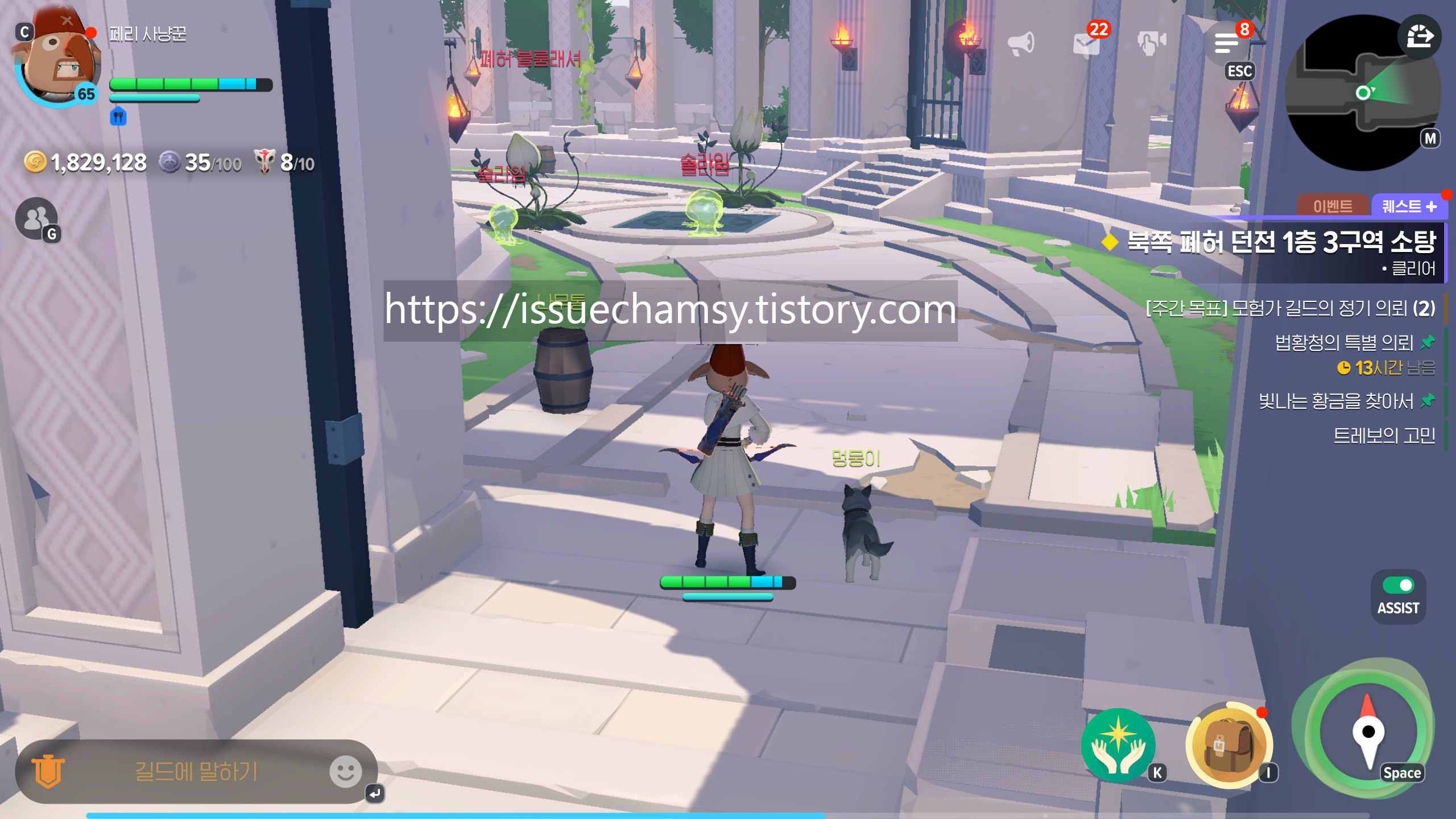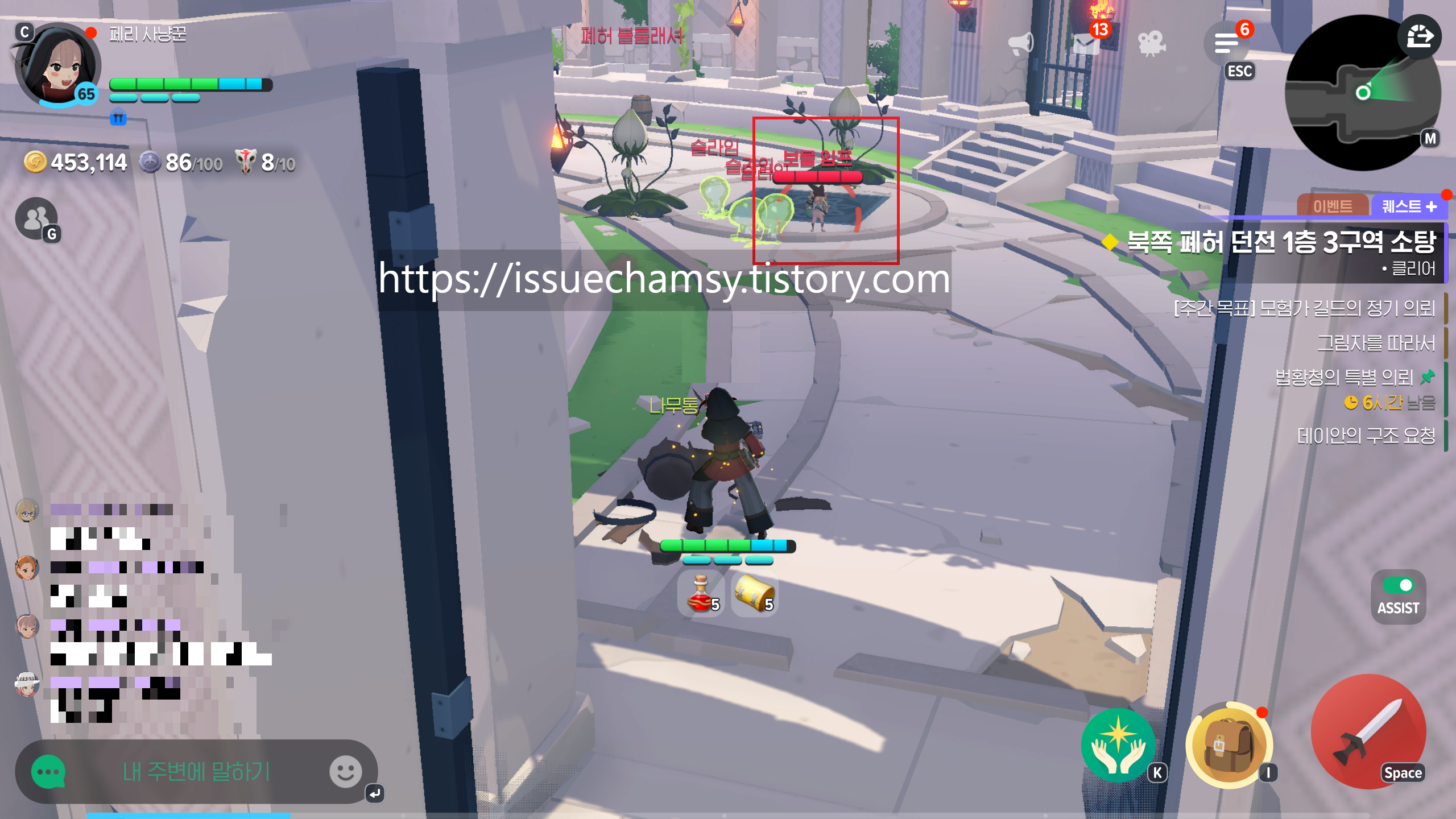 주변에 있는 슬라임과 폐허 블룸래셔도 잡아줍니다.
