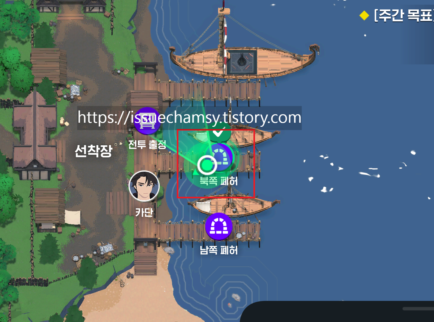 임보런을 하는 방법은 콜헨 - 선착장으로 이동합니다. 북쪽폐허의 던전선택을 합니다.