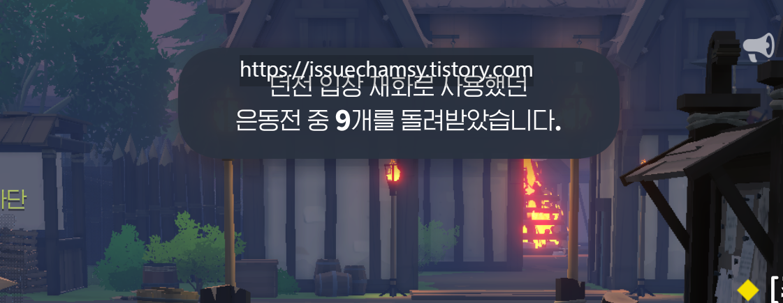 던전을 나가면 성공적으로 은동전 9개를 돌려받습니다. 총 1개의 은화가소모된것을 확인하실수 있습니다.