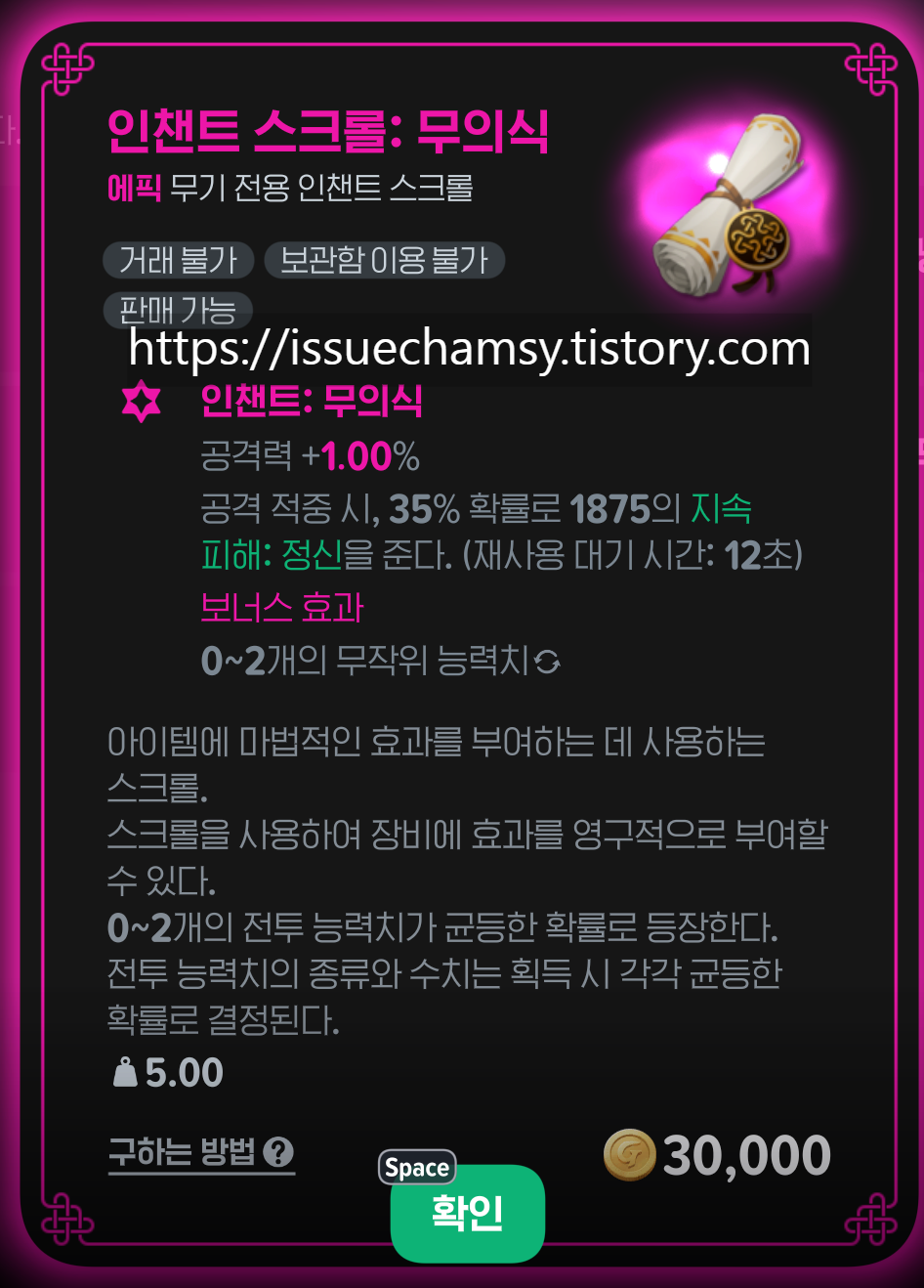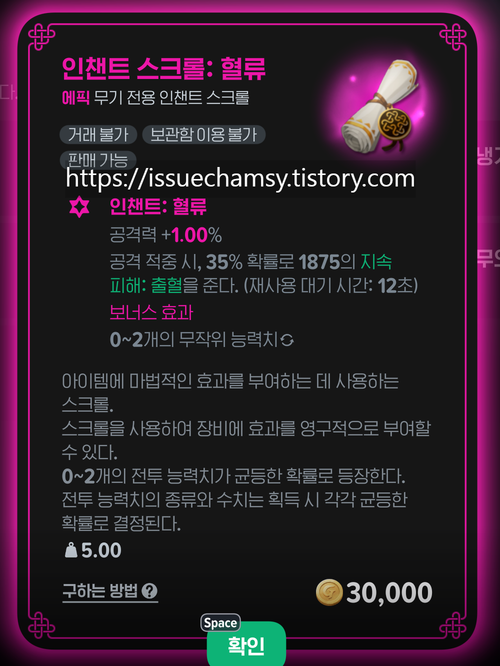 ⚔️무기 전용 인챈트 스크롤 5종 정보