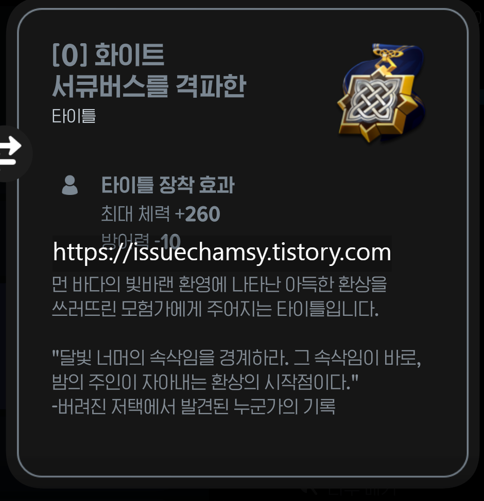 화이트 서큐버스 레이드를 1회 클리어 하면 얻을수 있는 타이틀입니다.