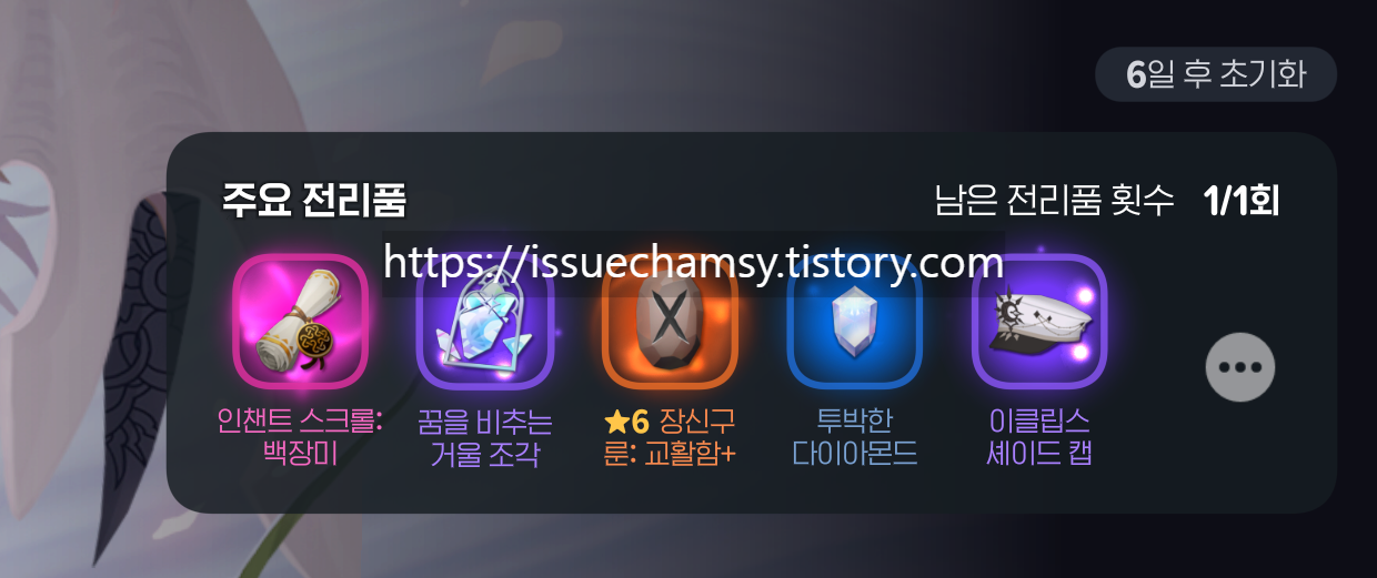 | 꿈을 비추는 거울 조각(레이드 재화) | 1개 | |