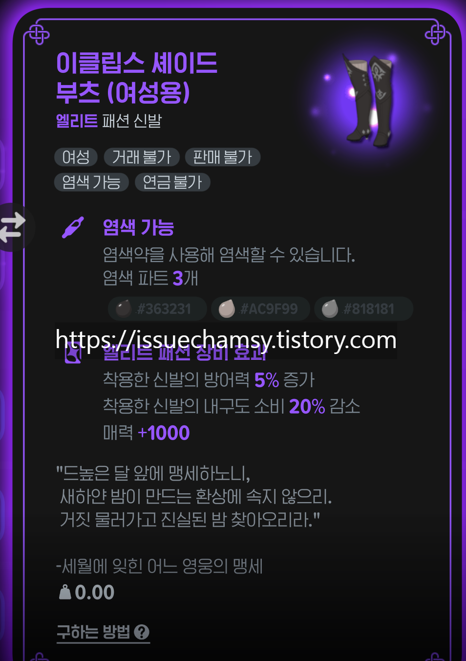 | 특별 보상 | 이클립스 셰이드 코스튬 | 1개 |
