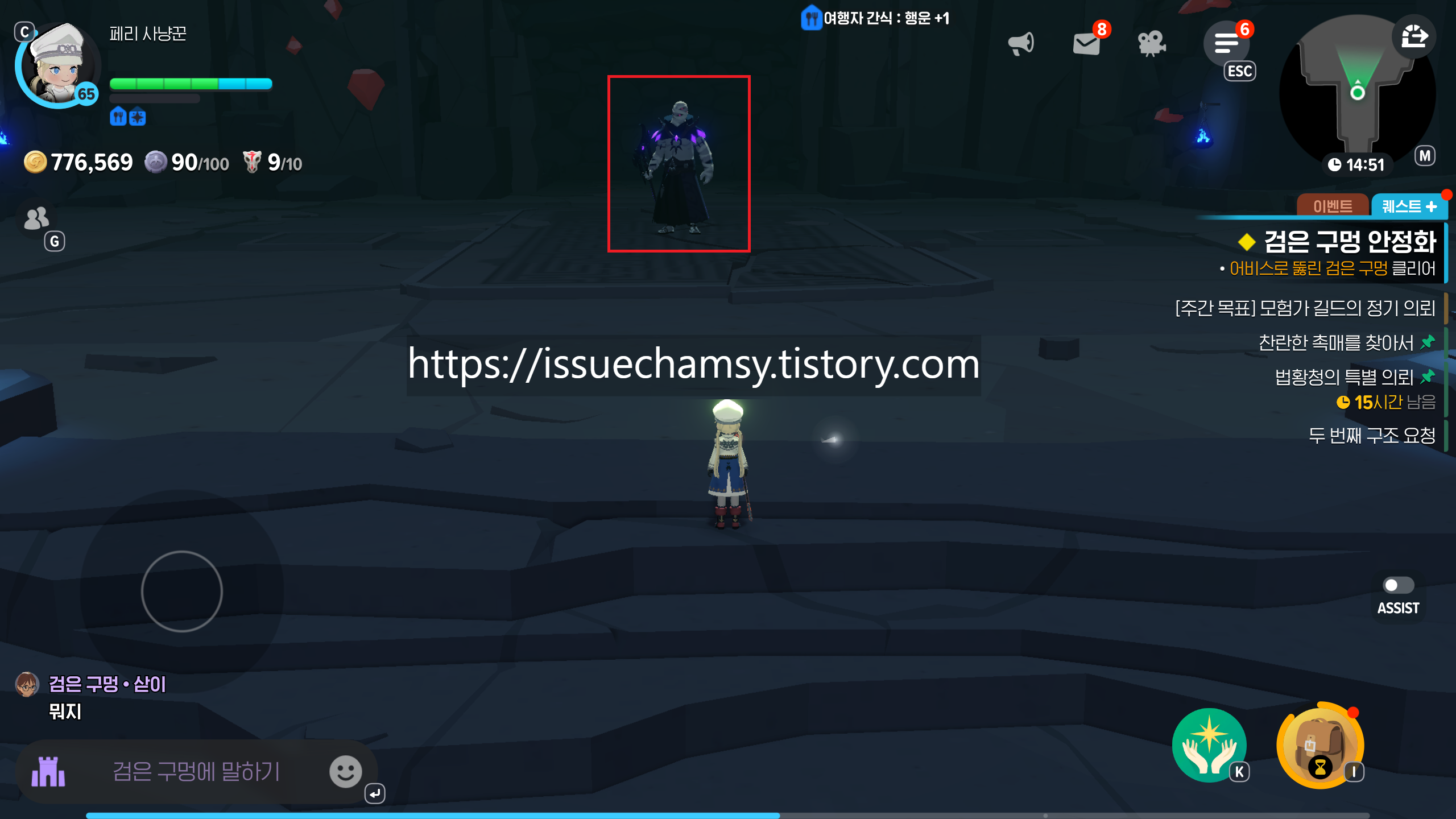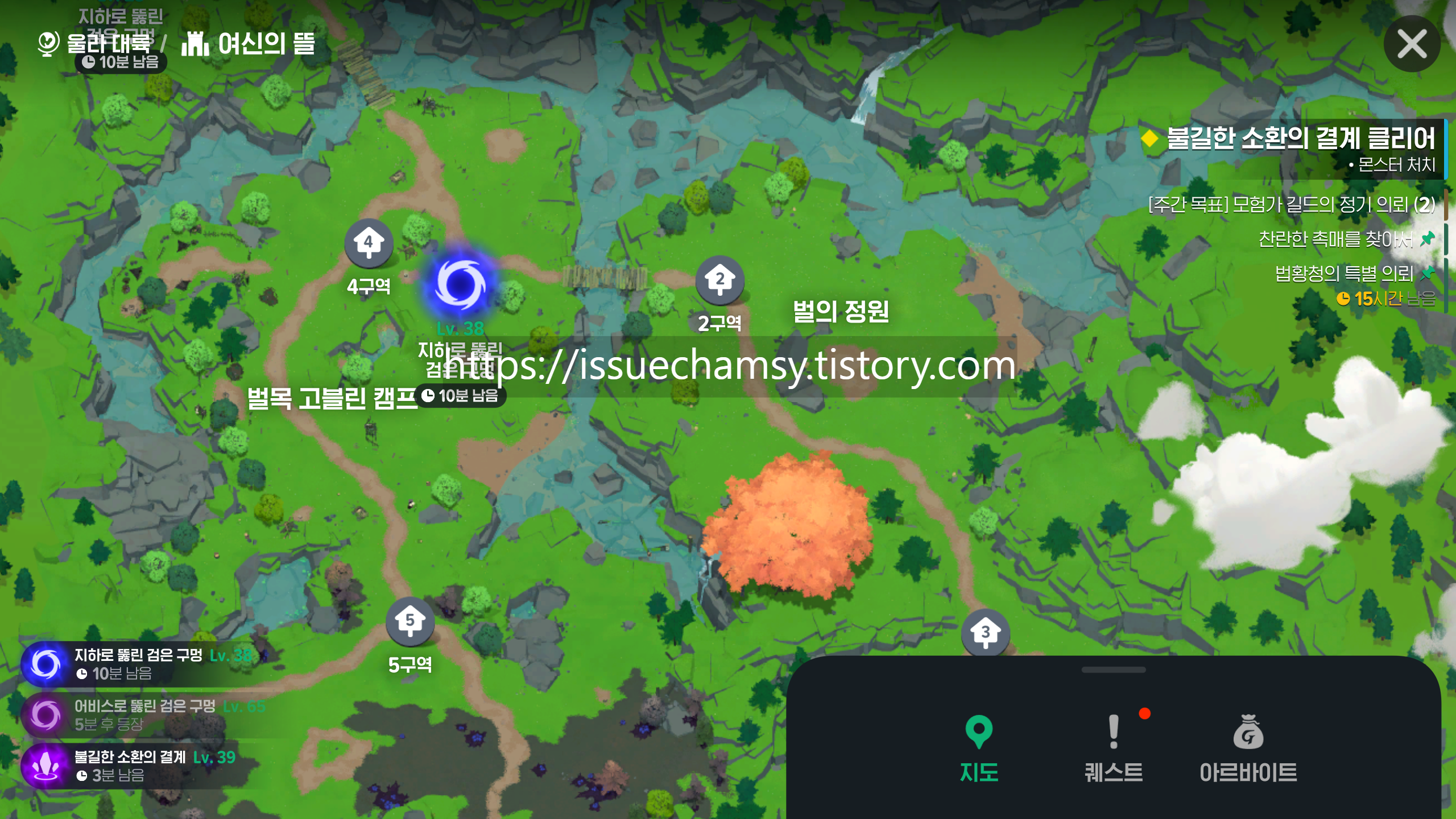 어비스로 뚫린 검은구멍이란? 사냥터에서 랜덤으로 등장하며, 약 1시간 전부터 지도에 알람이 표시됩니다.어비스 보스인 '트리울'이 등장하여 해당 사냥터에서 최초로 클리어시 타이틀도 획득가능합니다. 기존 검은구멍 횟수와 상관없이 입장이 가능합니다.(현재 버그로 입장이 안될수도있음)