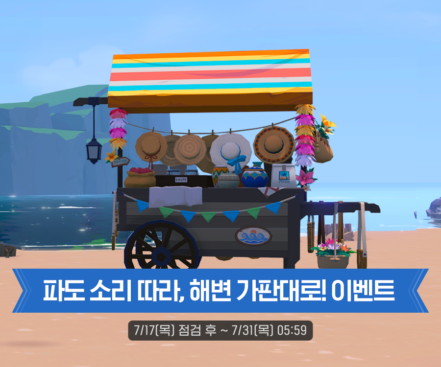 📚이벤트 확인방법: 우측 상단 [메뉴(≡)] → [이벤트] → [파도 소리 따라, 해변 가판대로!] 탭에서 이벤트 확인