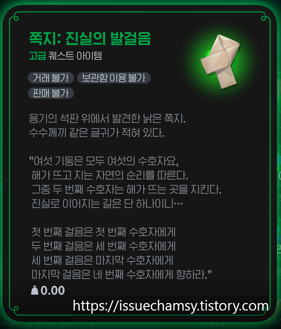◇길을 여는 자 기둥 수수께기 퀘스트 공략