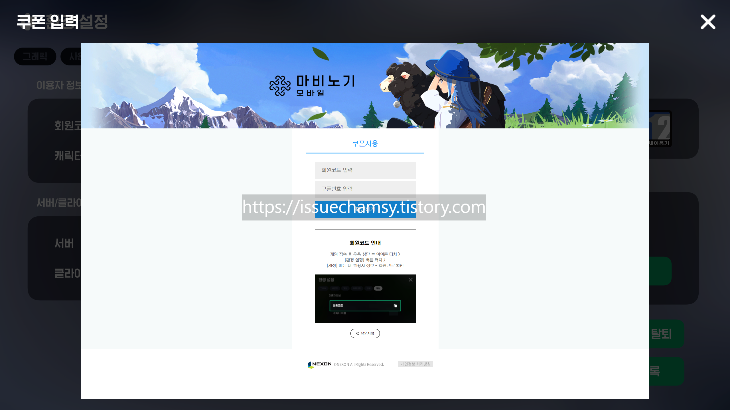 홈페이지 쿠폰 입력방법은 하단의 버튼을 클릭하시면 마비노기 모바일 공식홈페이지 쿠폰입력 화면으로 이동합니다.