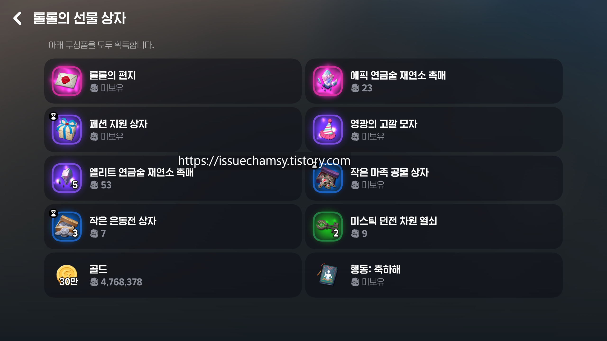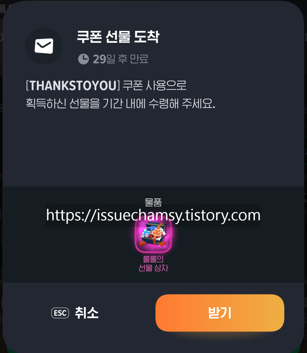✨롤롤 쿠폰 보상 롤롤의 선물상자 보상내용